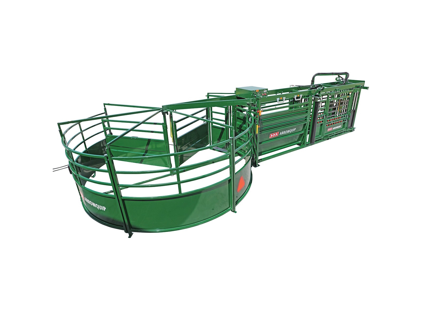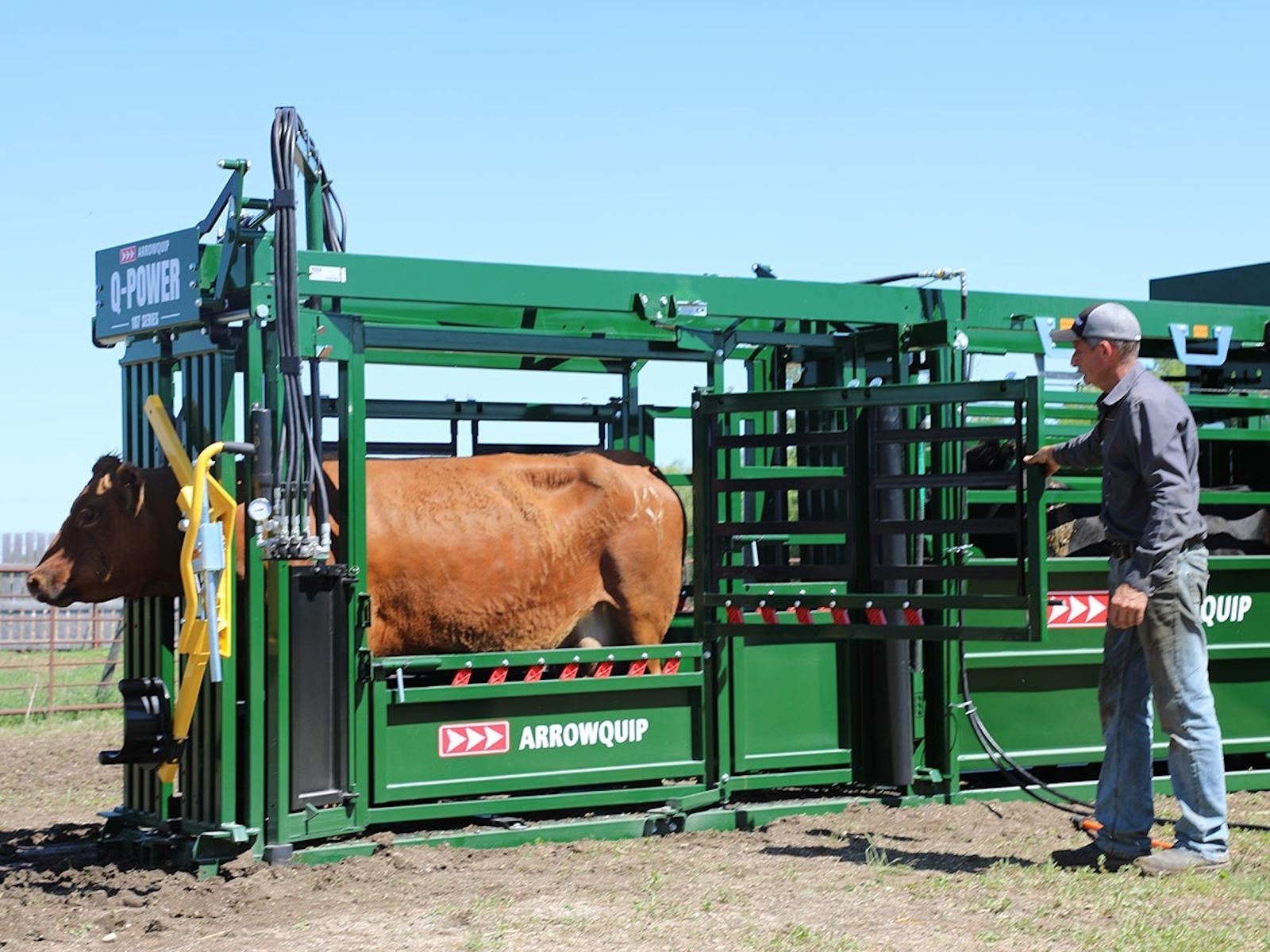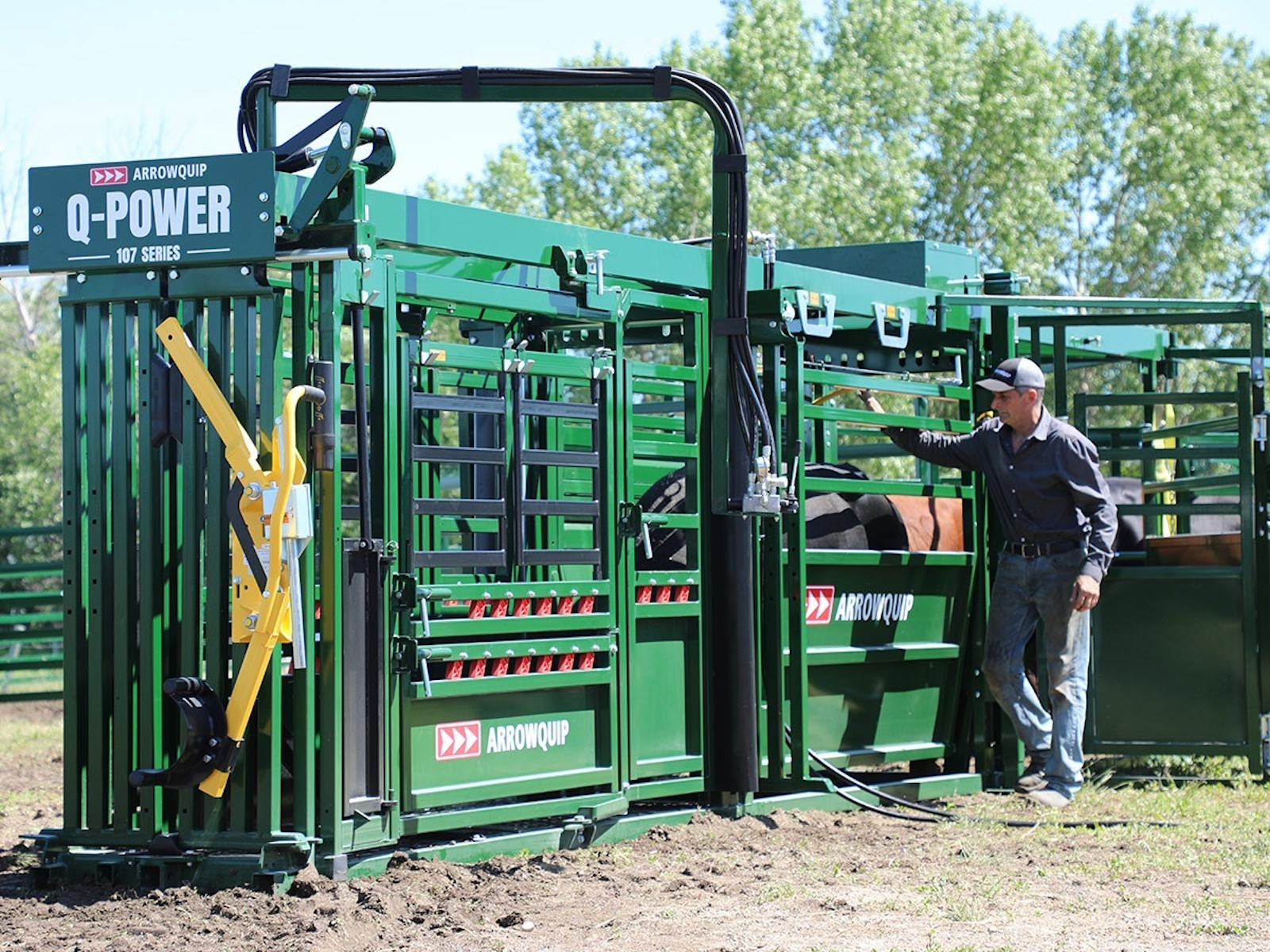 The NEW Q-Power 107 Series hydraulic chute is at the head of this powerful system. The fast-touch hydraulic controls provide superior cattle control, while the 3E components draw cattle through the system using light. This portable hydraulic chute for cattle enables handlers to complete their tasks in record time, leaving more time for the things that truly matter.