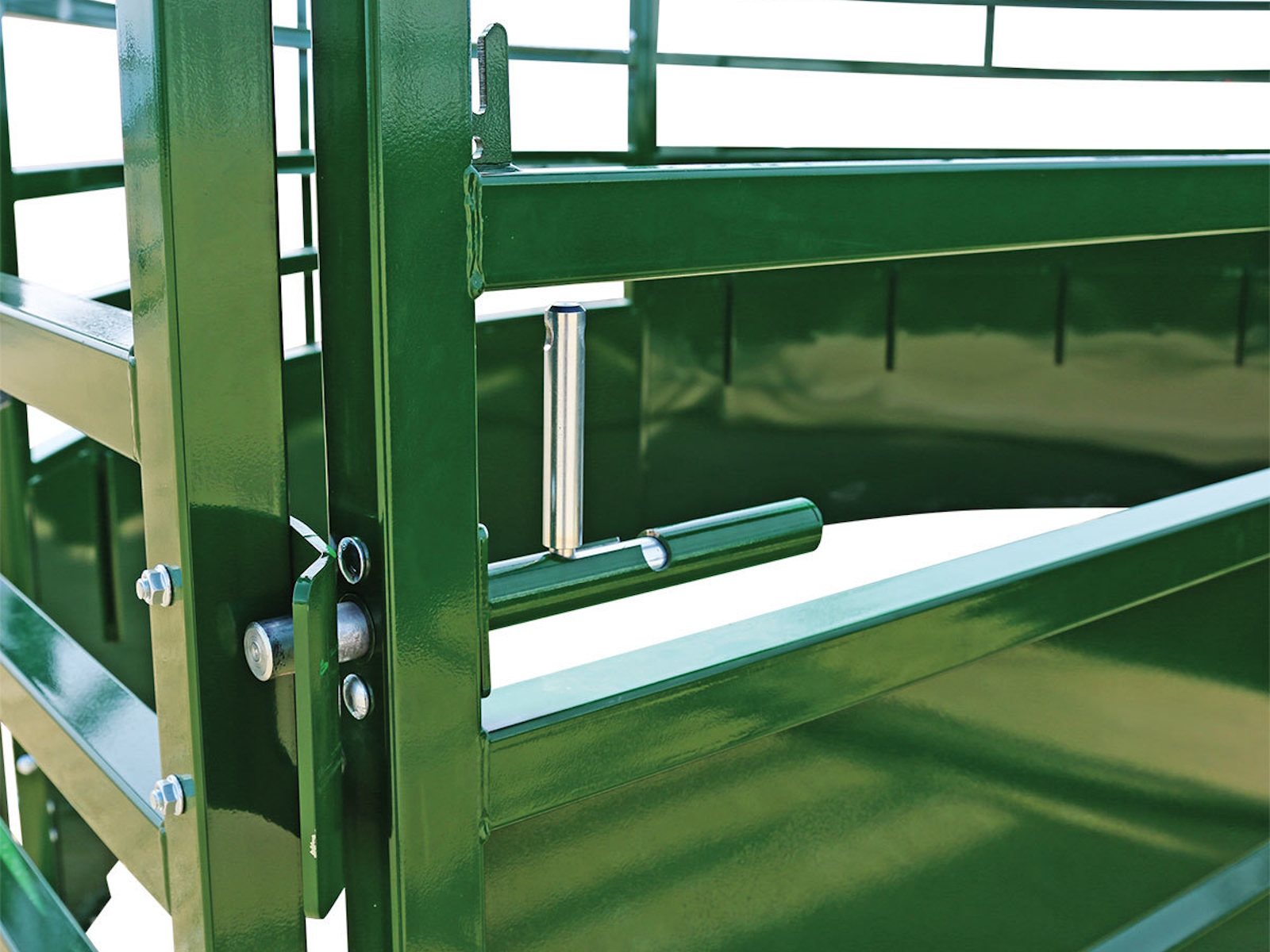 - Crowd gate lock assists in sweeping so cattle are unable to push the gate back