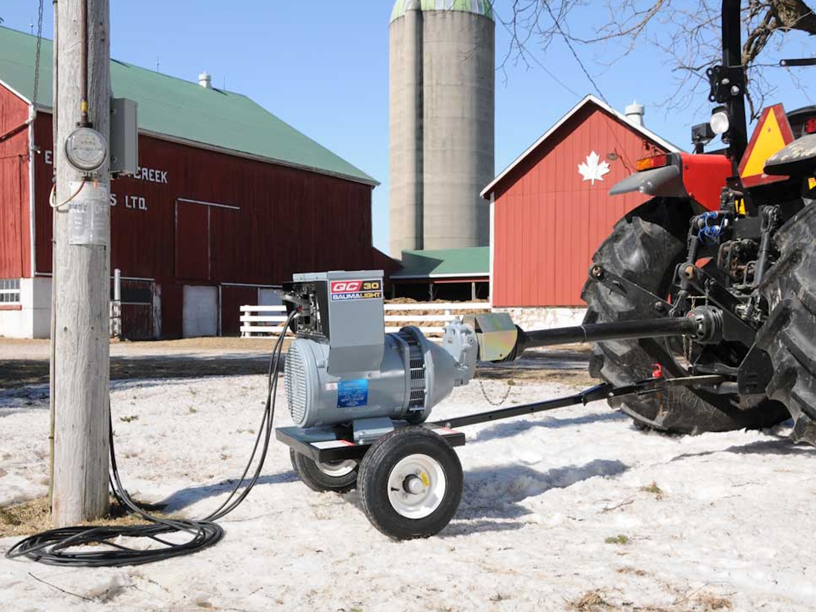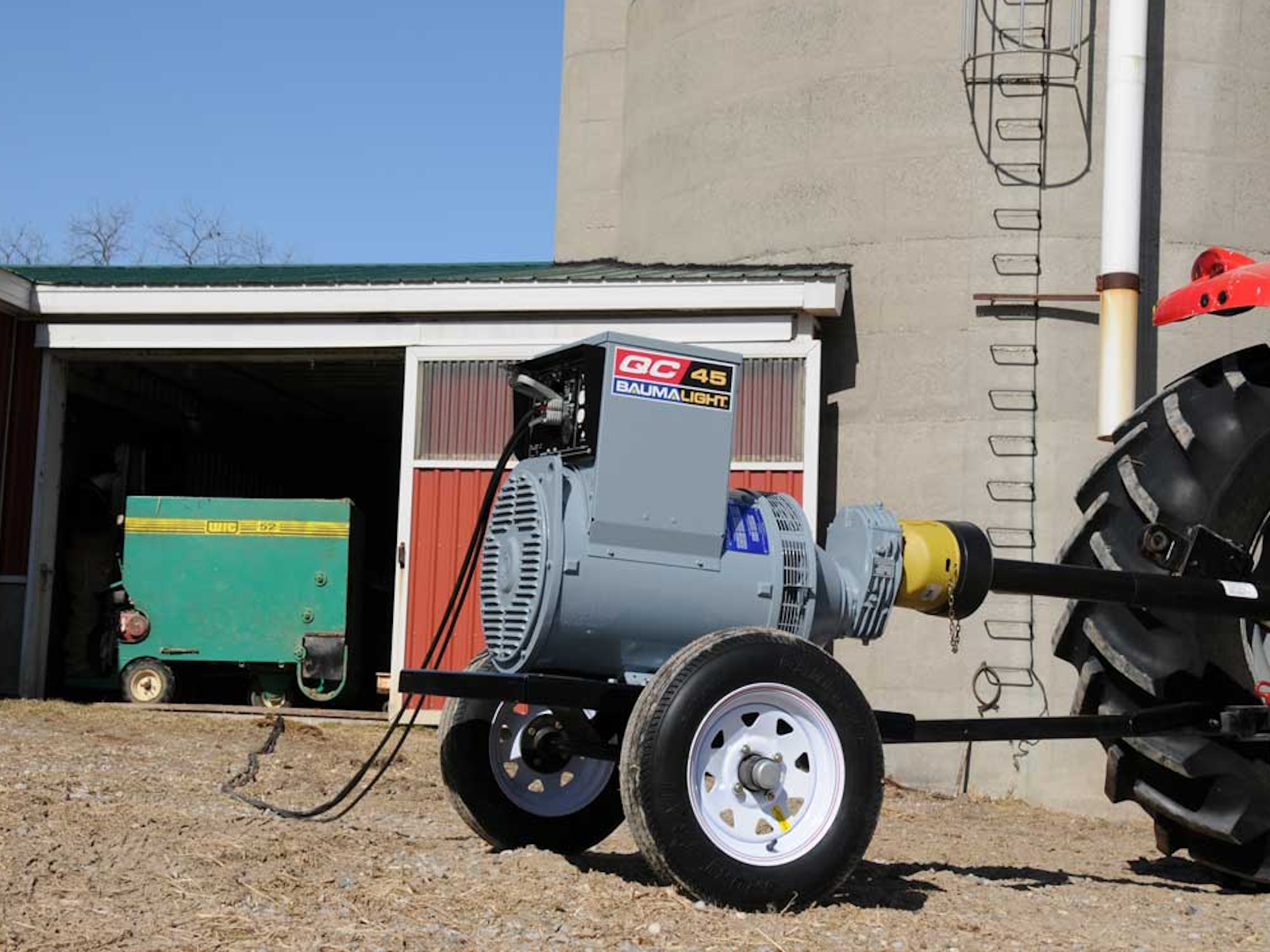 Designed for mobile or standby electrical power, the QC series tractor powered generator is ideal for your farm or rural property. At 100% load, these QC PTO models offer 12 KW to 100 KW and momentary surge from 25 up to 300 KW. To determine exactly how much power you need, you can find specific information on our website by using our Power Calculator as well as our Principles Chart, which outlines which QC PTO generator model will best suit your property’s power requirements.