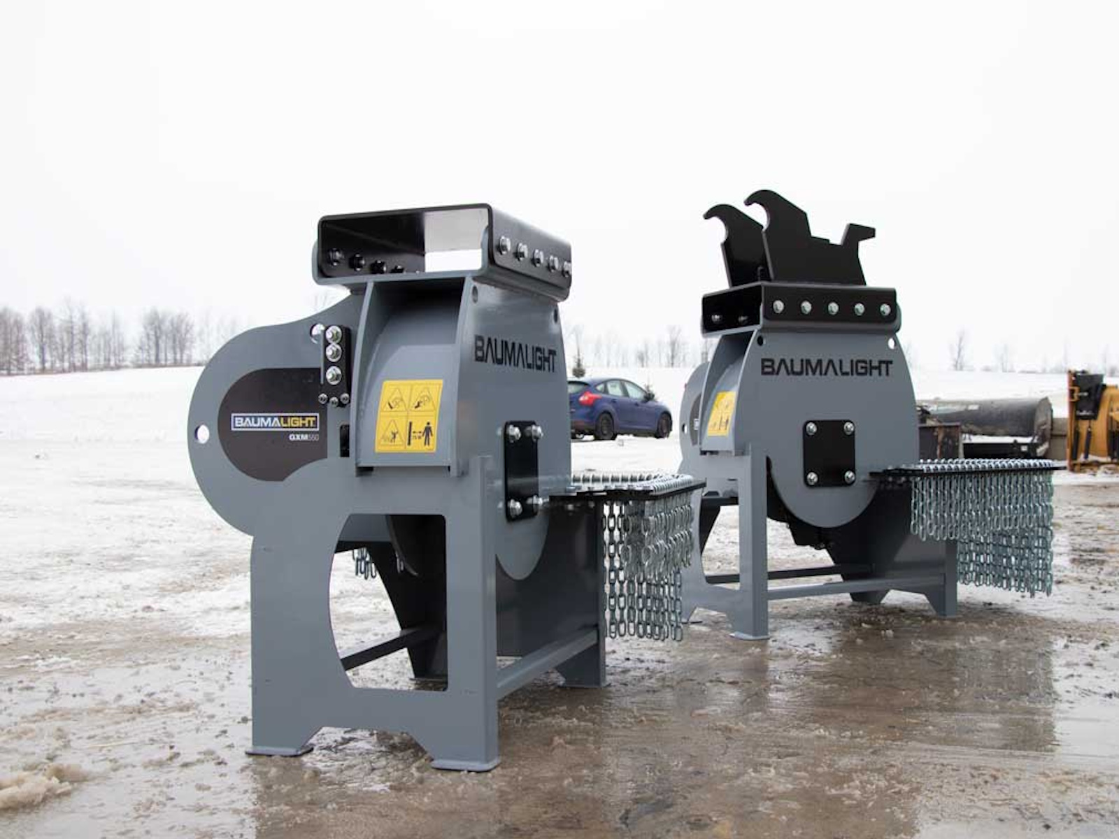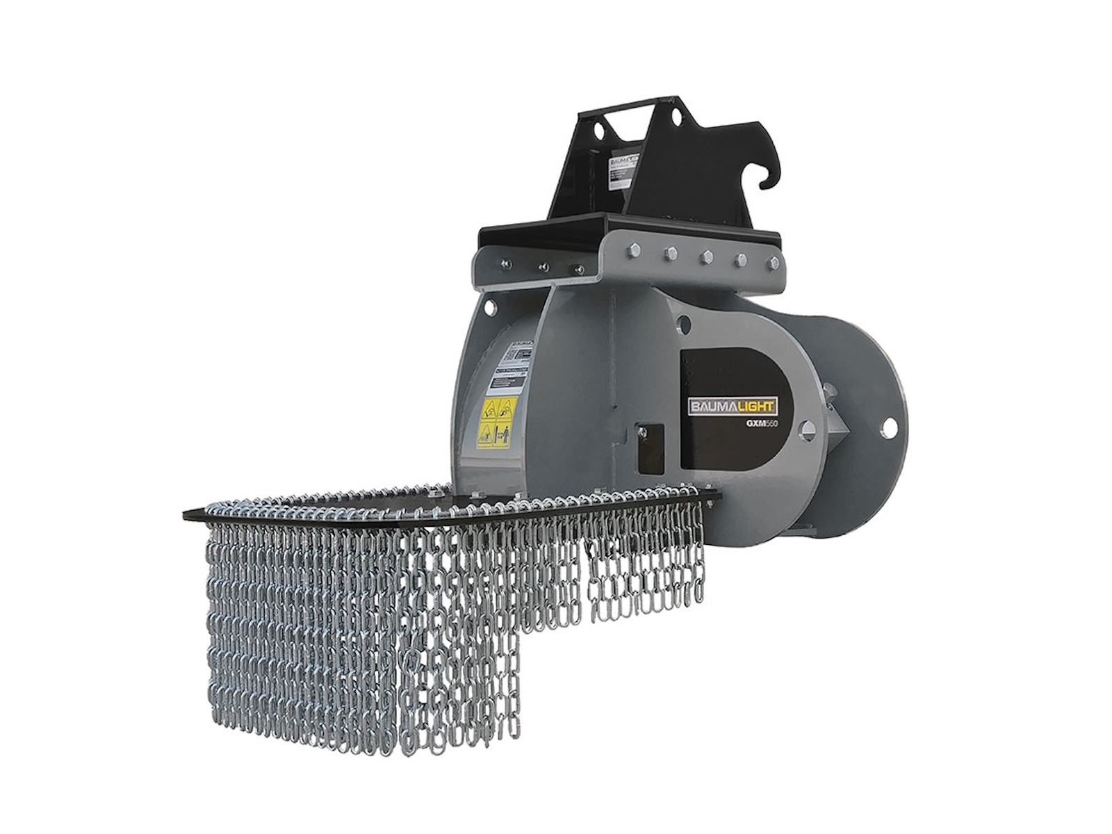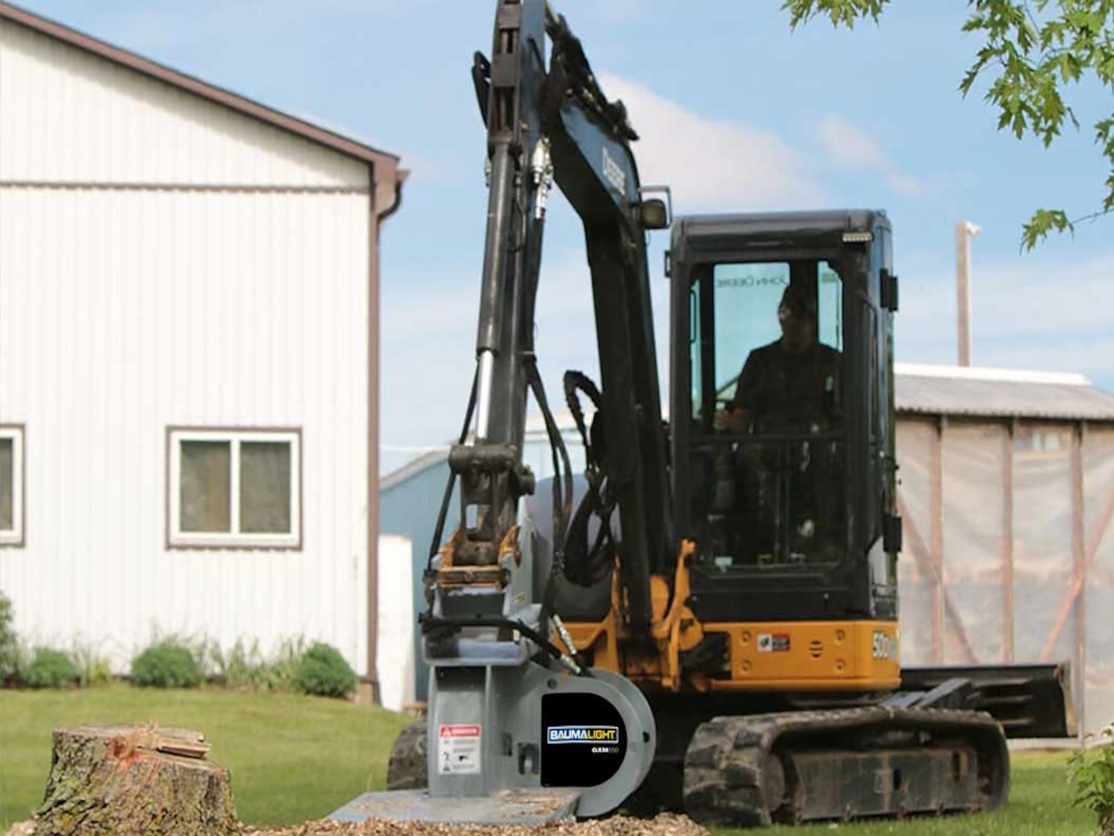 The 24" rotor is powered by a bent axis piston motor which provides ample stump grinding in virtually any location your excavator can reach. The extra-large blast shield provides maximum chip and debris control with a dual row of safety chain curtains. The massive 1.25" thick steel rotor provides the back bone for the Stump Grinder cutting system. It’s the anchor for the carbide tipped teeth. For smooth operation it’s important that the rotor remains solid, with no flexing. The rugged rotor also provides the Stump Grinder with the extra momentum needed when the grinding is tough, making sure the Stump Grinder can power through the hardest stumps. The GXM550 Baumalight stump grinder is offered with three motor options to best match your flow. A GXM550 with a motor of X510 having a PSI of 3000 can cut a stump of 24 inches in 25 mins at 12 GPM, whereas the same motor parameter and increased PSI of 4000 can cut a stump of 24 inches in 20 mins at 12 GPM. If the GPM is increased to 15, the time taken will be reduced.