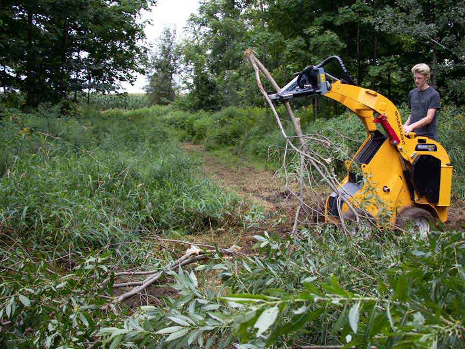 The ISH3M tree puller is designed to be mounted to a standard mini skidsteer plate. The mini Tree Ripper can grab hold and pull up to 2 inch diameter trees out of the ground, roots and all. By getting the roots and all, regrowth is greatly reduced. Designed for 1500 lb. to 3000 lb. class mini tool carriers, the ISH3M will quickly clear an entire area, or selectively remove troublesome saplings, all from the comfort of the operator platform. The hydraulic jaw holds the trees tight while your stand on skidsteer arms let you uproot unwanted saplings quickly and cleanly.