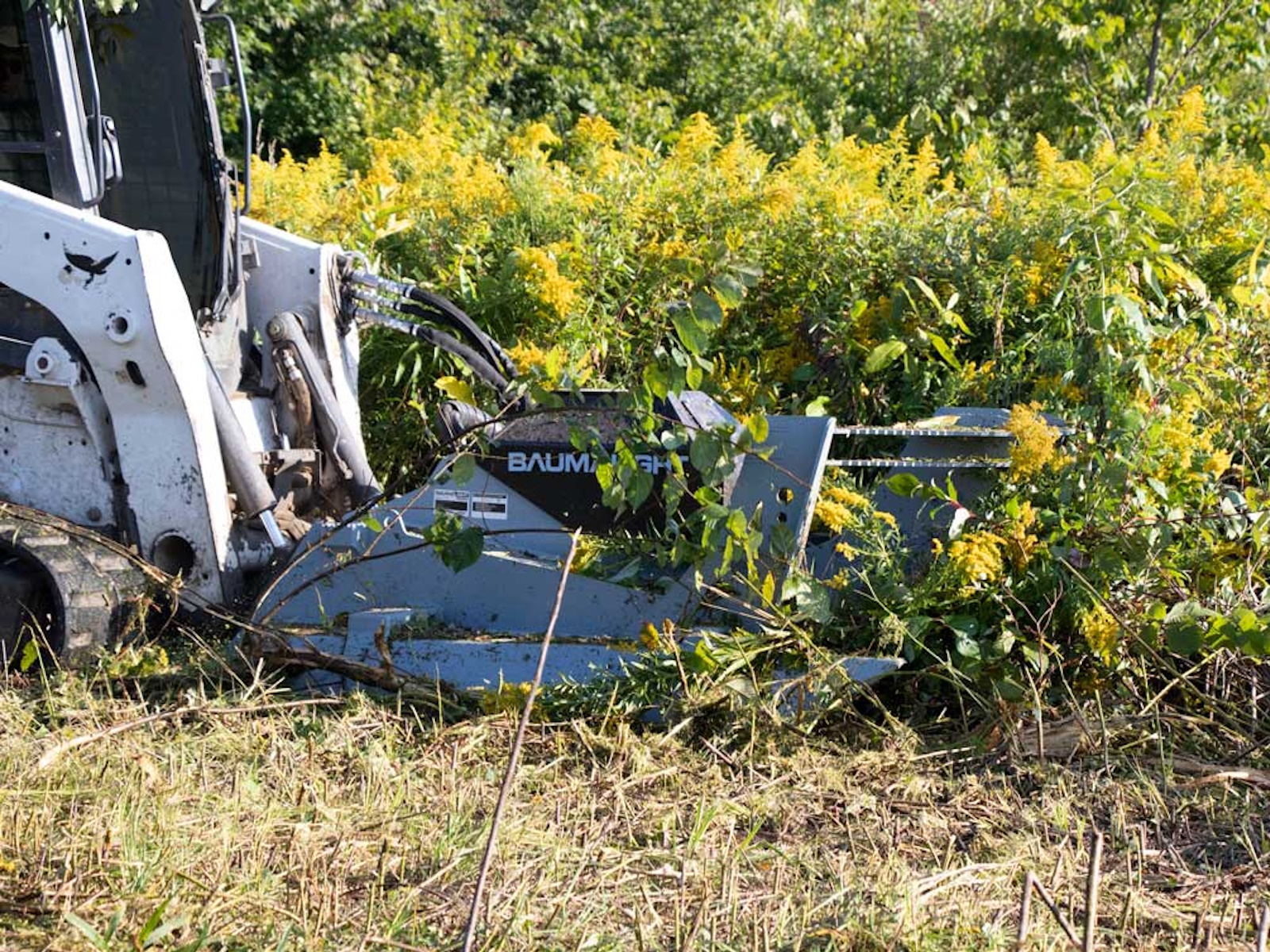 Standard on the 700 series rotary brush cutter, the Brush Bar helps to funnel brush under the Rotary Brush Cutter to the AR400 blades. The serrated open front design of the push bar works to push the taller, heavier brush to the hardened blades, making quick work of woody brush and saplings.