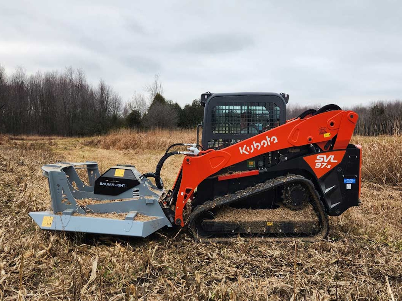 The rugged frame of the CF772 heavy-duty rotary brush cutter houses four AR400 blades featuring an 83" path width. The 1/4” steel deck is designed to stand up and perform in rough terrain while cutting trees, brush, unwanted weeds and grass. The 72" wide open mouth of this unit allows you to cut down larger trees in a sawing action.