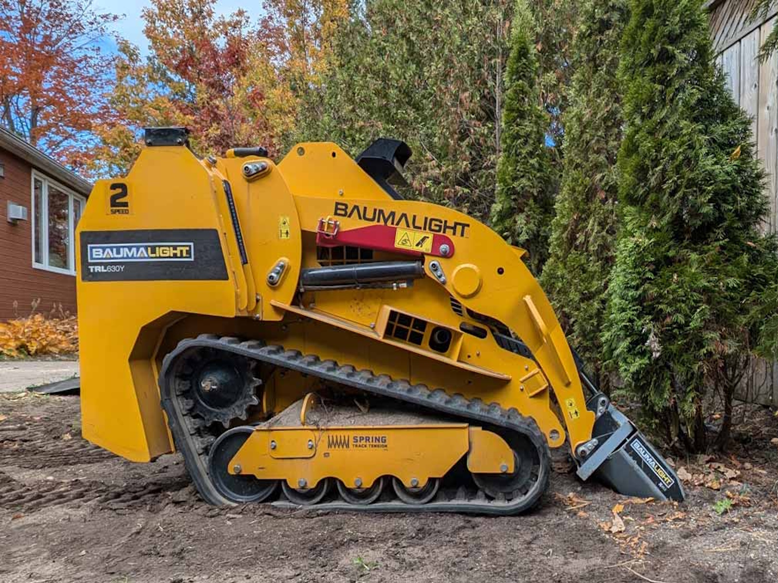 The Baumalight TRL630Y tracked mini skidsteer is a 2-speed unit but otherwise much the same as the TRL620Y, it uses the same engine and a similar hydraulic system. When switched to 2-speed the TRL630Y travels at very high speeds and automatically slows to turn or under load it also automatically slows down the speed and ramps up the bulldozing power.