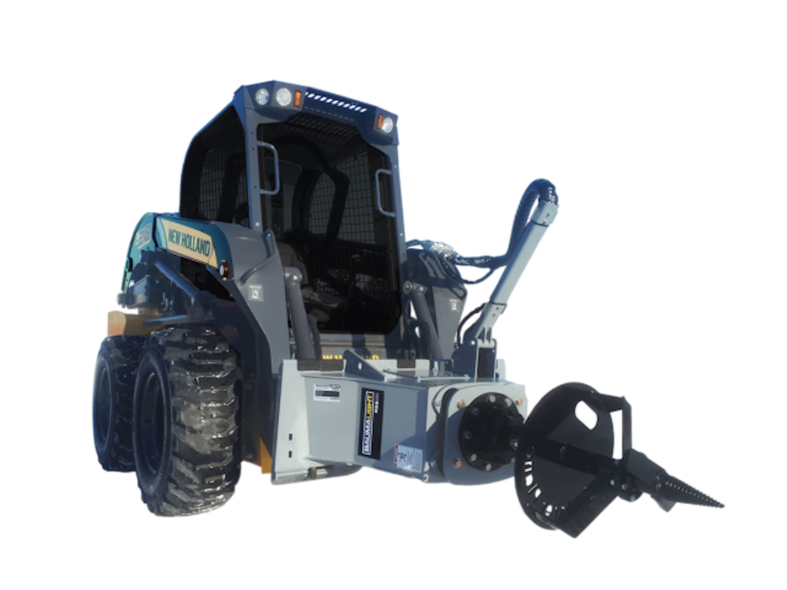 RSS Skidsteer models have a Stump Planer tool that is designed to mount using a Skidsteer plate. The RSS model operates at a low RPM so that chips are contained during the operation with very little mess to clean up. Ideal for urban areas or confined spaces, the Stump Planer requires less power as it does not produce as fine material as a high speed cutting wheel. This enables larger stumps to be ground faster with smaller carriers, creating better mulch for other small trees. The Stump Planer tool features a hardened replaceable tip for extra-long wear and sharpenable cutting blades.