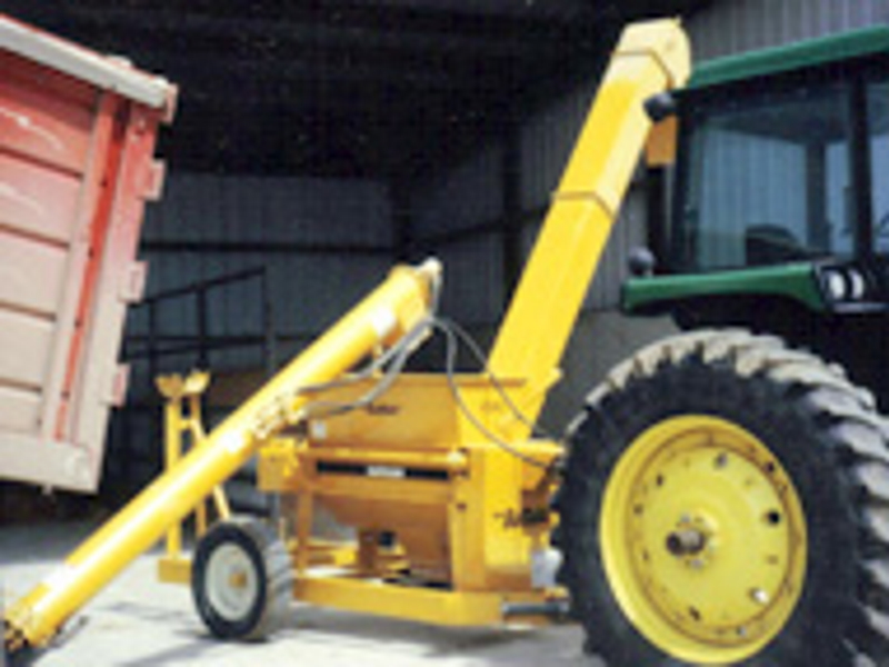 Elevator discharge moves the milled grain up for discharge into a wagon, etc.