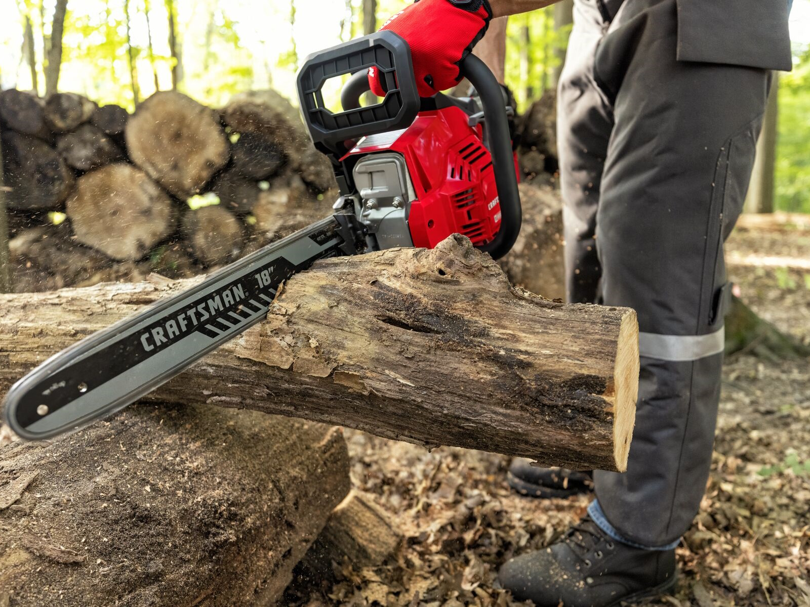 - MAKE QUICK CUTS THROUGH THICK WOOD: 18 in bar and chain swiftly powers through dense, rough wood with low kickback