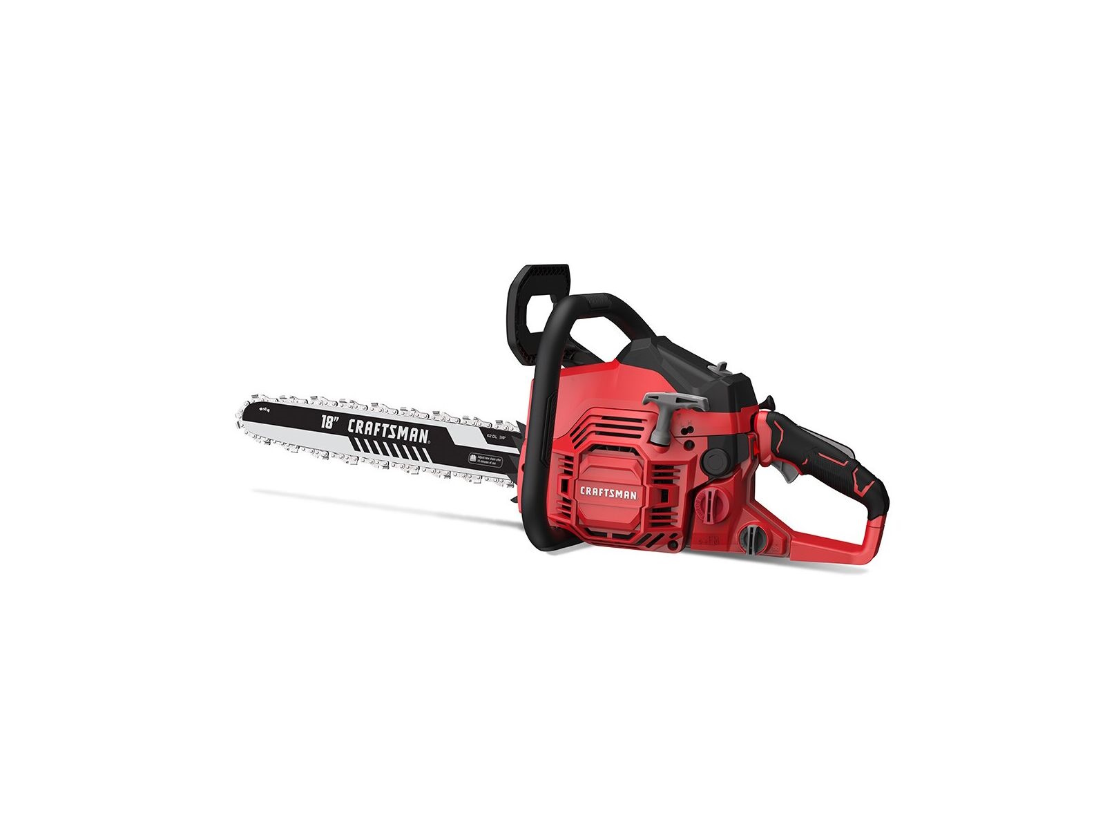 Cut through thick wood using this lightweight, high-output S1800 18 in. 42 cc 2-Cycle Gas Chainsaw. Equipped with a full-crank, fast-starting engine, the gas-powered chainsaw delivers stable power to thoroughly saw through dense wood. Its 18 in. low-kickback bar and chain along with included easy pull start technology help you get right to work and finish the job quickly. Stay balanced as you maneuver into different cut positions using a 3-point anti-vibration system, which was designed to enhance operability and provide a comfortable, low-strain grip. The chainsaw was built for ease of use with tool-free access to its filter and spark plug, an adjustable automatic oiler, and a self-activated chain brake for safety.