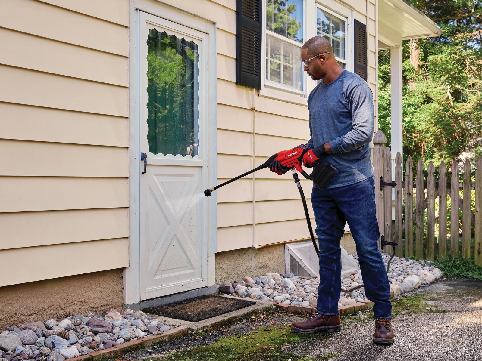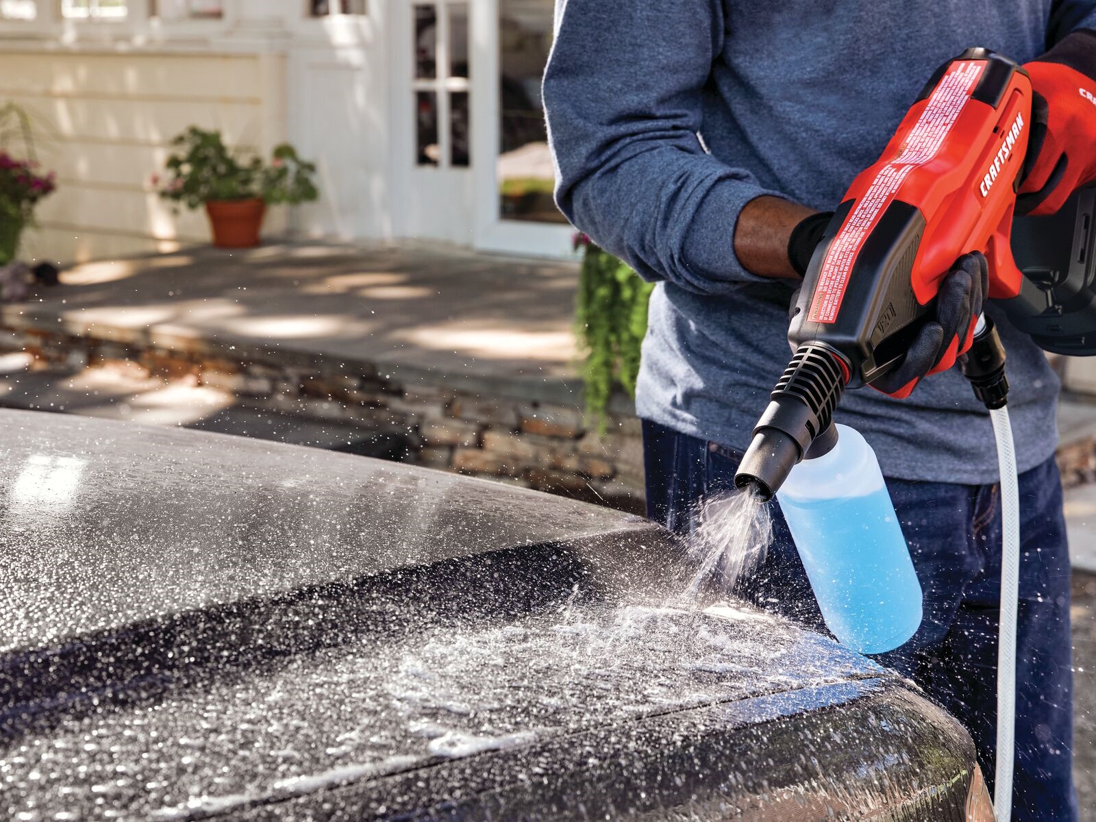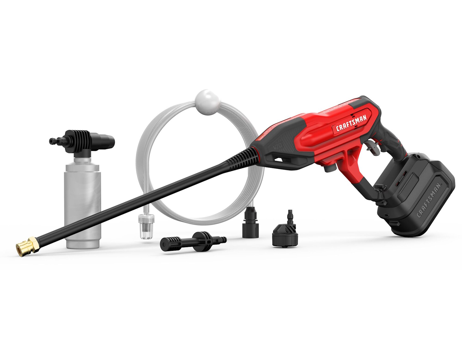 With 5X the pressure of a garden hose, the V20* Cordless Power Cleaner Kit is designed to take on your outdoor watering and cleaning needs. The 5-in-1 nozzle with quick connect provides a variety of cleaning options, and the 2-speed setting switch achieves a high cleaning pressure. Conveniently utilize any fresh water source with the included suction hose and use the soap bottle to apply detergents for a thorough clean. Attach the included short watering wand to water flowers for a clean and green, polished outdoor space. The V20* battery platform is compatible with CRAFTSMAN® V20* Outdoor Equipment and Power Tools. You'll find the complete line of outdoor tools and equipment essentials for a job to make you proud.