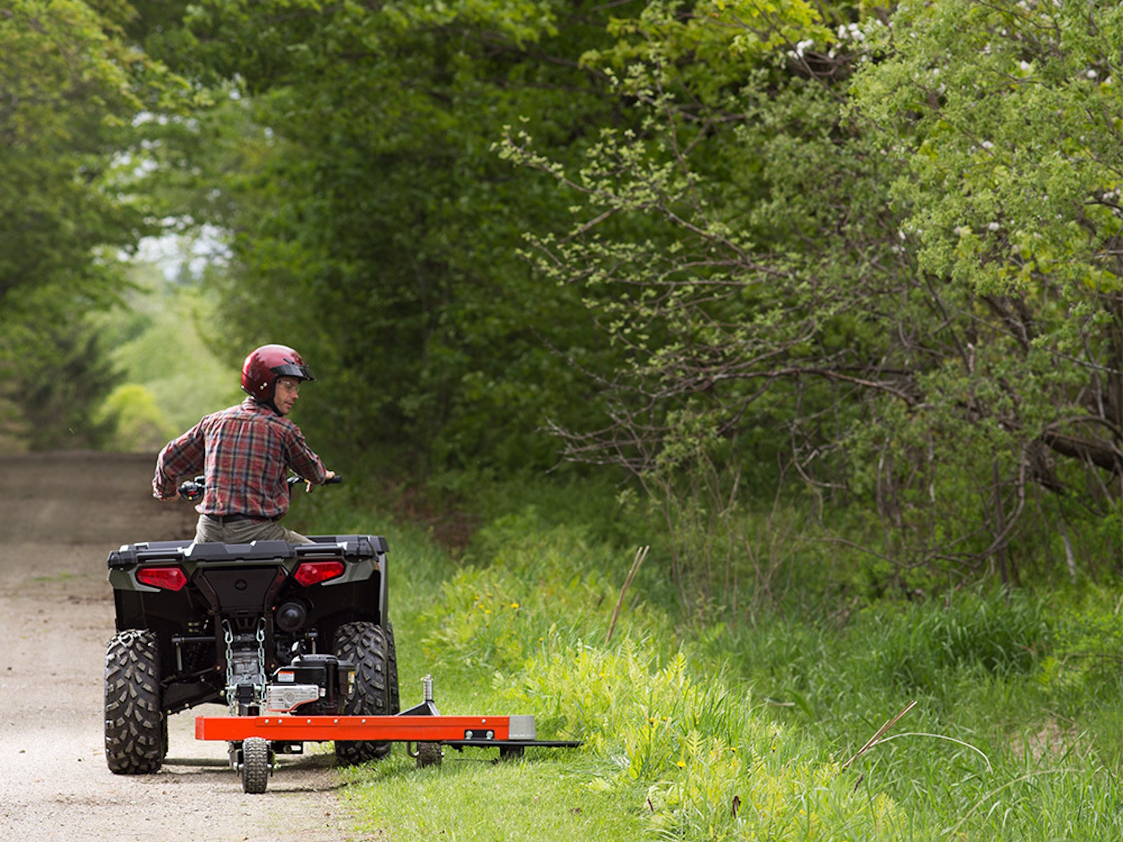 Hitch our All-Terrain model to your ATV (or UTV) and take care of all your rough area trimming and mowing. Great for fence lines, trails, ditches, and more. Quick-Lock Trimmer Head makes cord changes fast and easy.
