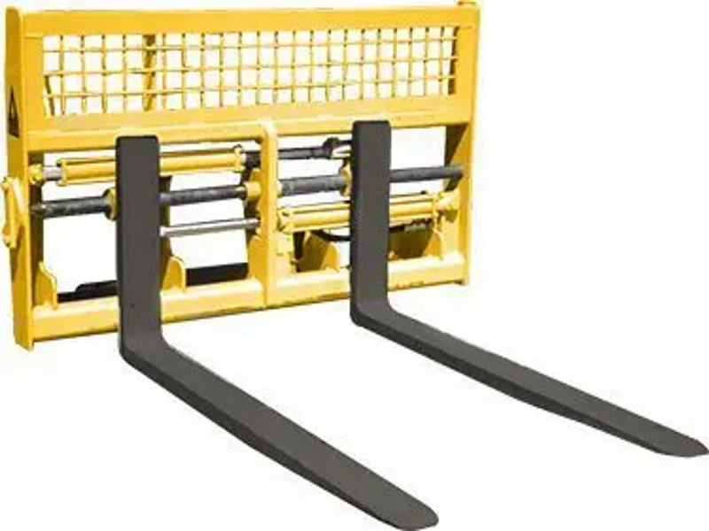 These forks feature two hydraulic cylinders that easily adjust the tines, eliminating labor and lost time associated with manual adjustments.