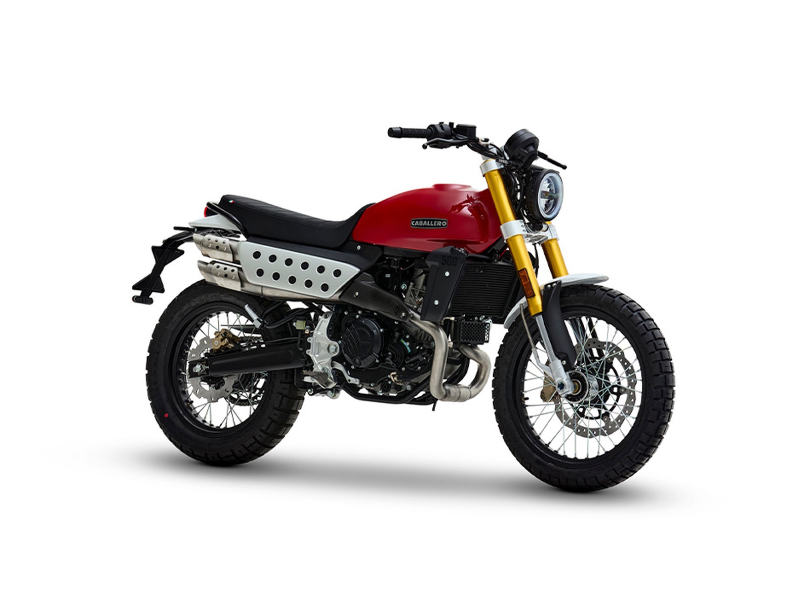 Equipped with a 460cc DOHC single-cylinder engine, developed and produced by Motori Minarelli, the Caballero Scrambler 500 stands out for its unique, lightweight, and minimalist design, offering total freedom on every type of terrain. Nimble and responsive on the road, bold and lively off-road — with the new Caballero Scrambler, the fun knows no bounds.