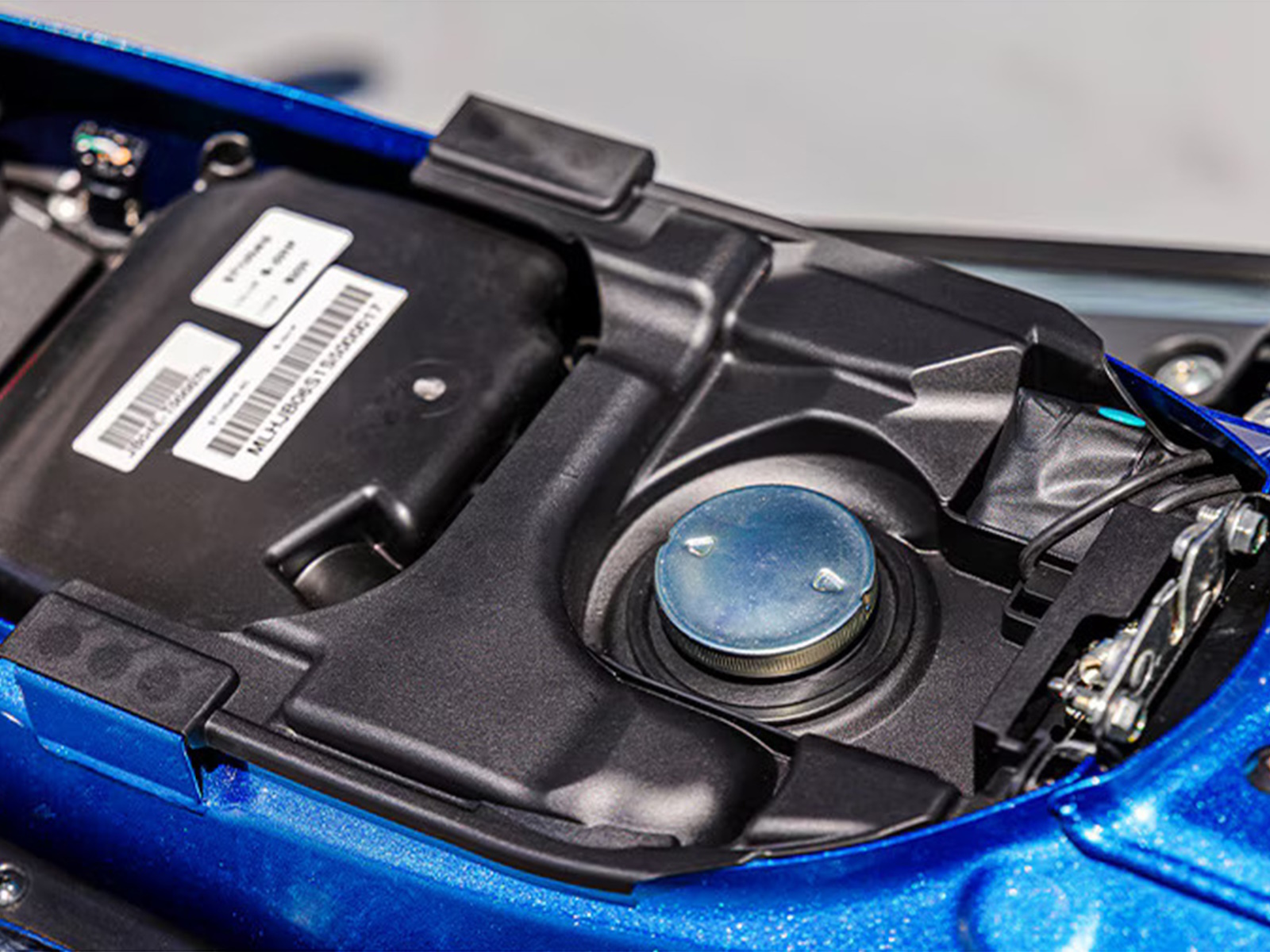 - FLIP-UP SEAT: The seat flips up to reveal the fuel filler cap. A locking seat function uses the ignition key and keeps everything secure.