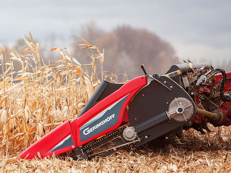 The optional down corn auger makes harvesting down crops even easier. The hydraulically driven conveyor auger located on the outside bodies (left-hand, right-hand, or double-sided design) of your Geringhoff corn head prevents cobs from being slung out of the corn head. It also keeps corn plants from accumulating on the outer bodies. -
