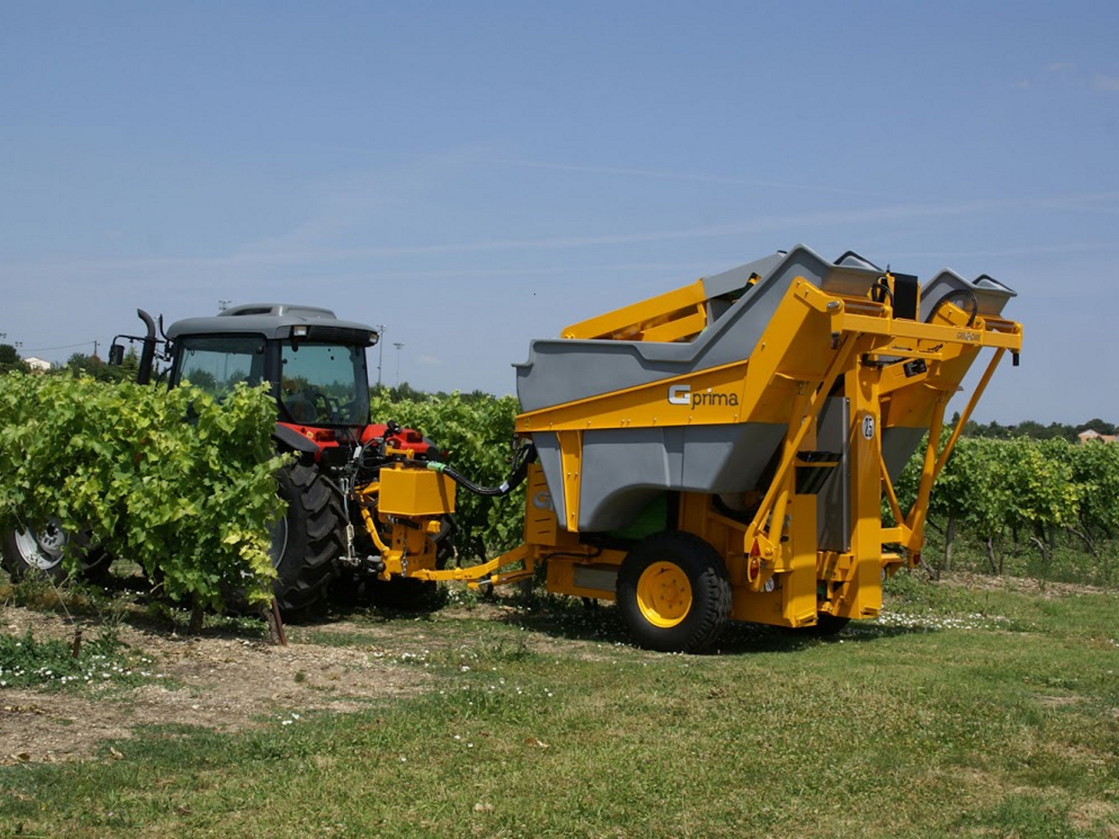 - Even when used with a low power tractor, the G.Prima is your reliable vine harvesting partner. And in the most difficult working conditions, the G.Prima can be equipped with 630 cc wheel motors. This allows you to manage the hydraulic pressure setting directly from the driver position.