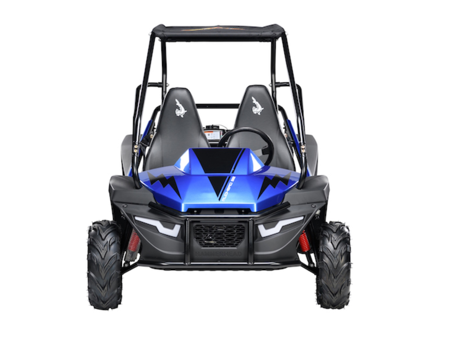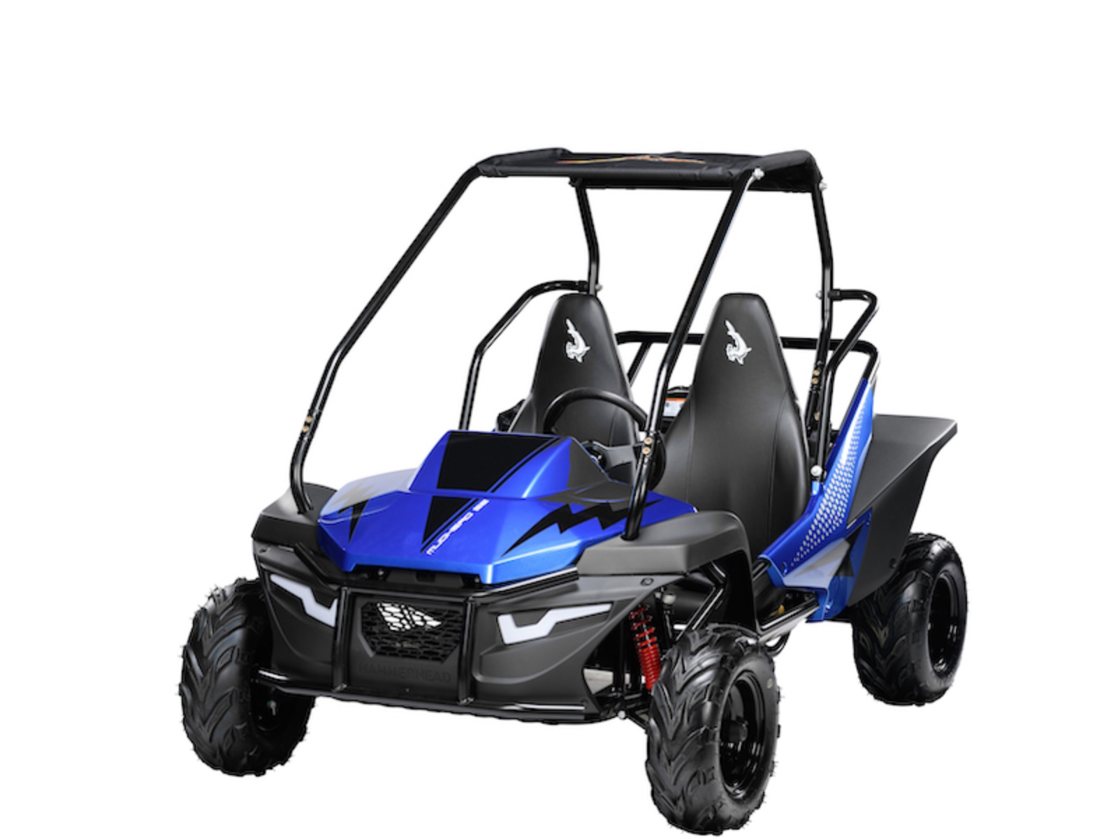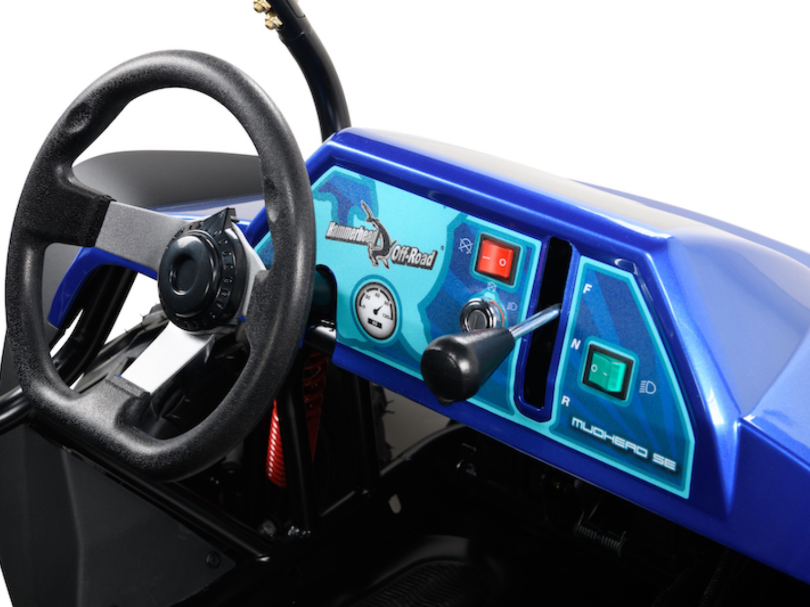 The Hammerhead Mudhead SE is our newest addition to the youth segment. Designed to be the most reliable and stylish youth go-kart available on the market, the SE will be your kid’s dream come true. Available in six colors, the Mudhead SE comes equipped with reverse and a 208cc (6.5 HP) LCT electric-start engine utilizing a manual choke for all-weather starting. Other standard features include ROPS, LED headlights, throttle limiter and an upgraded plastic body with steel bumper.