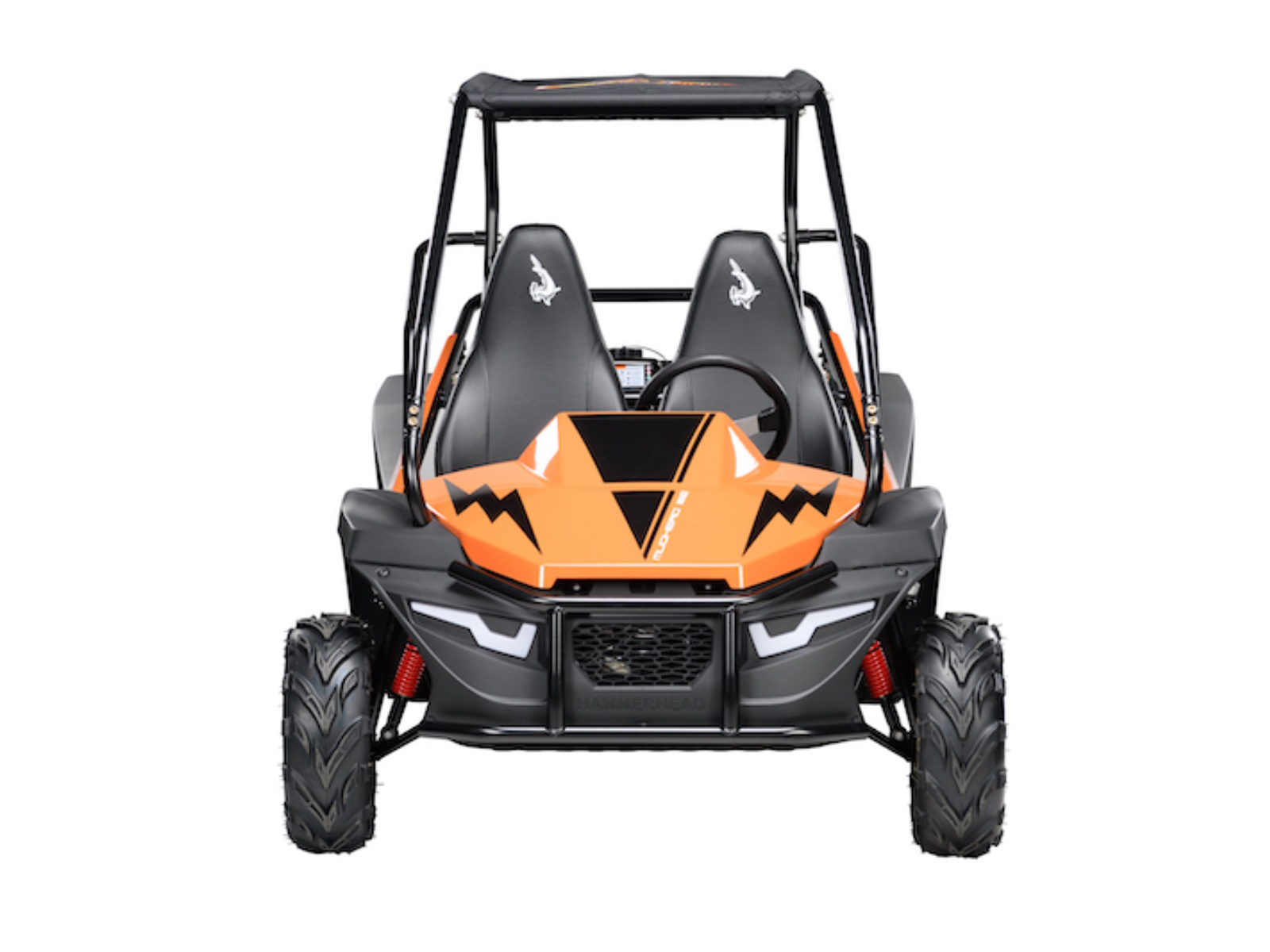 The Hammerhead Mudhead SE is our newest addition to the youth segment. Designed to be the most reliable and stylish youth go-kart available on the market, the SE will be your kid’s dream come true. Available in six colors, the Mudhead SE comes equipped with reverse and a 208cc (6.5 HP) LCT electric-start engine utilizing a manual choke for all-weather starting. Other standard features include ROPS, LED headlights, throttle limiter and an upgraded plastic body with steel bumper.
