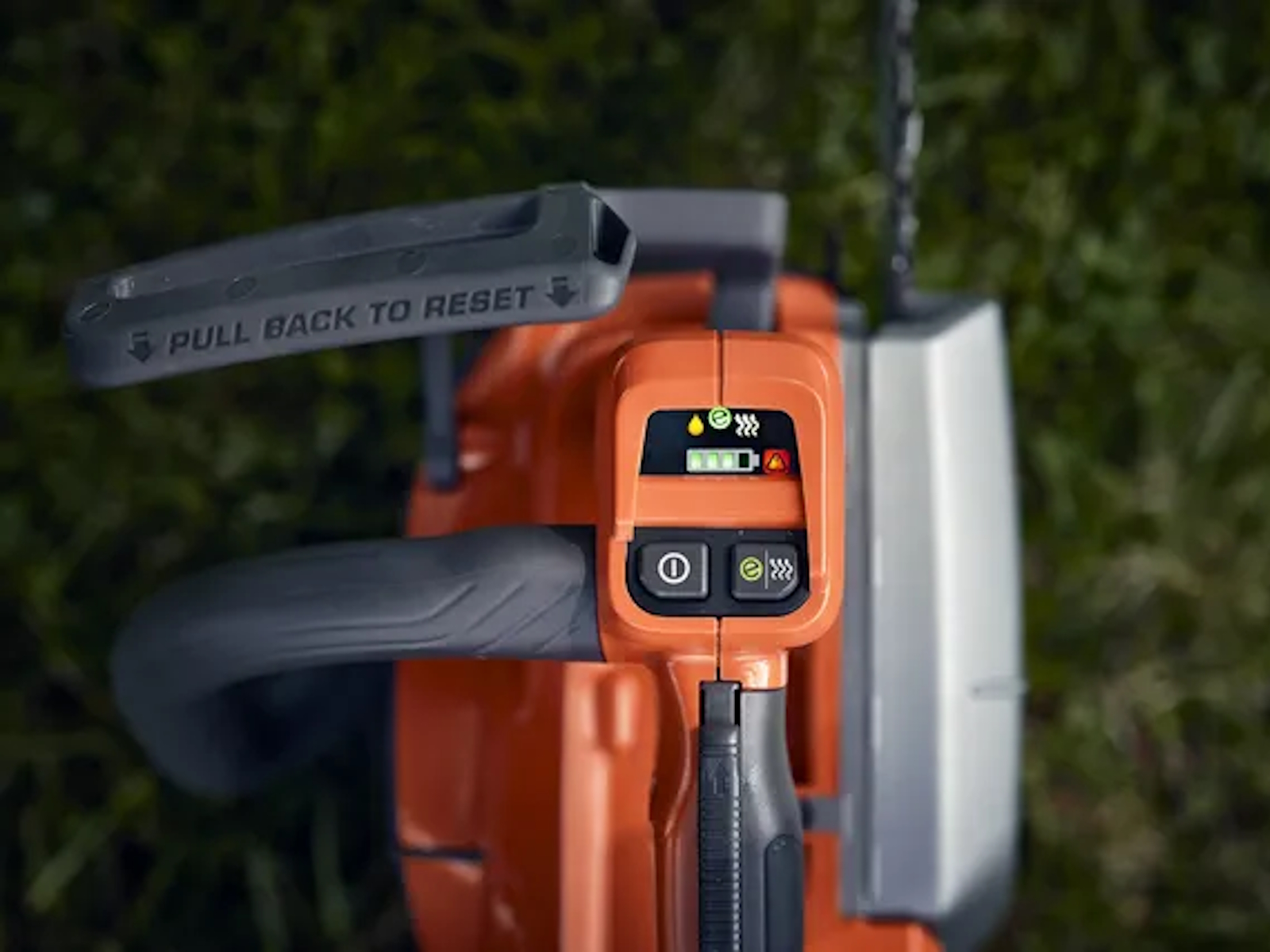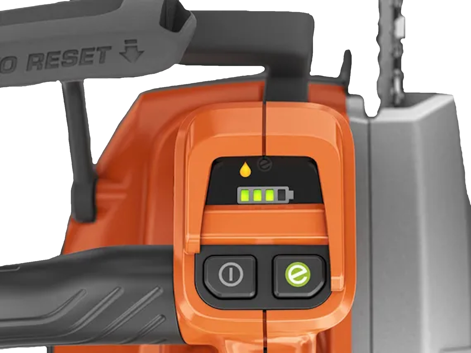 The accessible keypad helps you to stay in control; start and stop easily by pressing a button. A savE™-function allows for a choice between max runtime or max power. Charge status is always clearly visible when the battery is activated, the oil drop symbol lit up when chain oil is running low and there’s a reminder if the chain brake is in ’on’-position.
