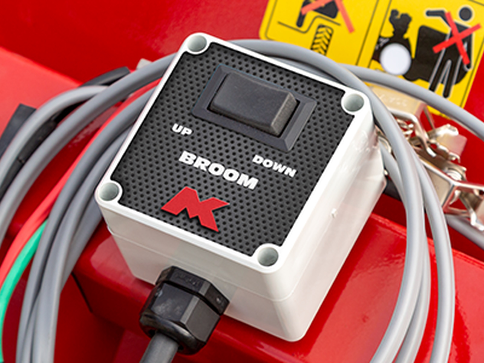 An electric actuator adjusts the height of the broom for effective cleaning. - Height Adjustment
