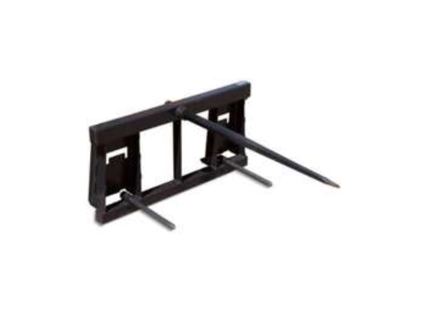 For bales up to 3,000 lbs. @ 24 in load center | Main spear – single tapered, forged, 2-1/8 in diameter × 49 in | Stabilizer spikes – dual 1-1/4 in diameter × 19 in