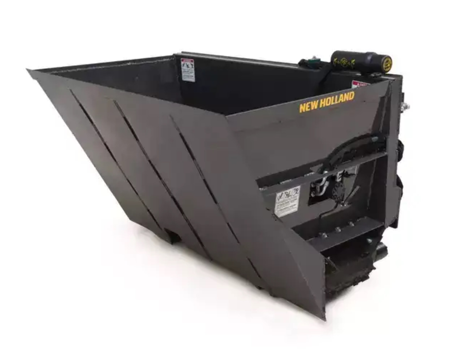 This side discharge bucket is designed to collect and discharge sawdust, mulch, and sand into barns, stalls and orchards, or backfill. It's also capable of spreading materials such as silage, stone, or topsoil.