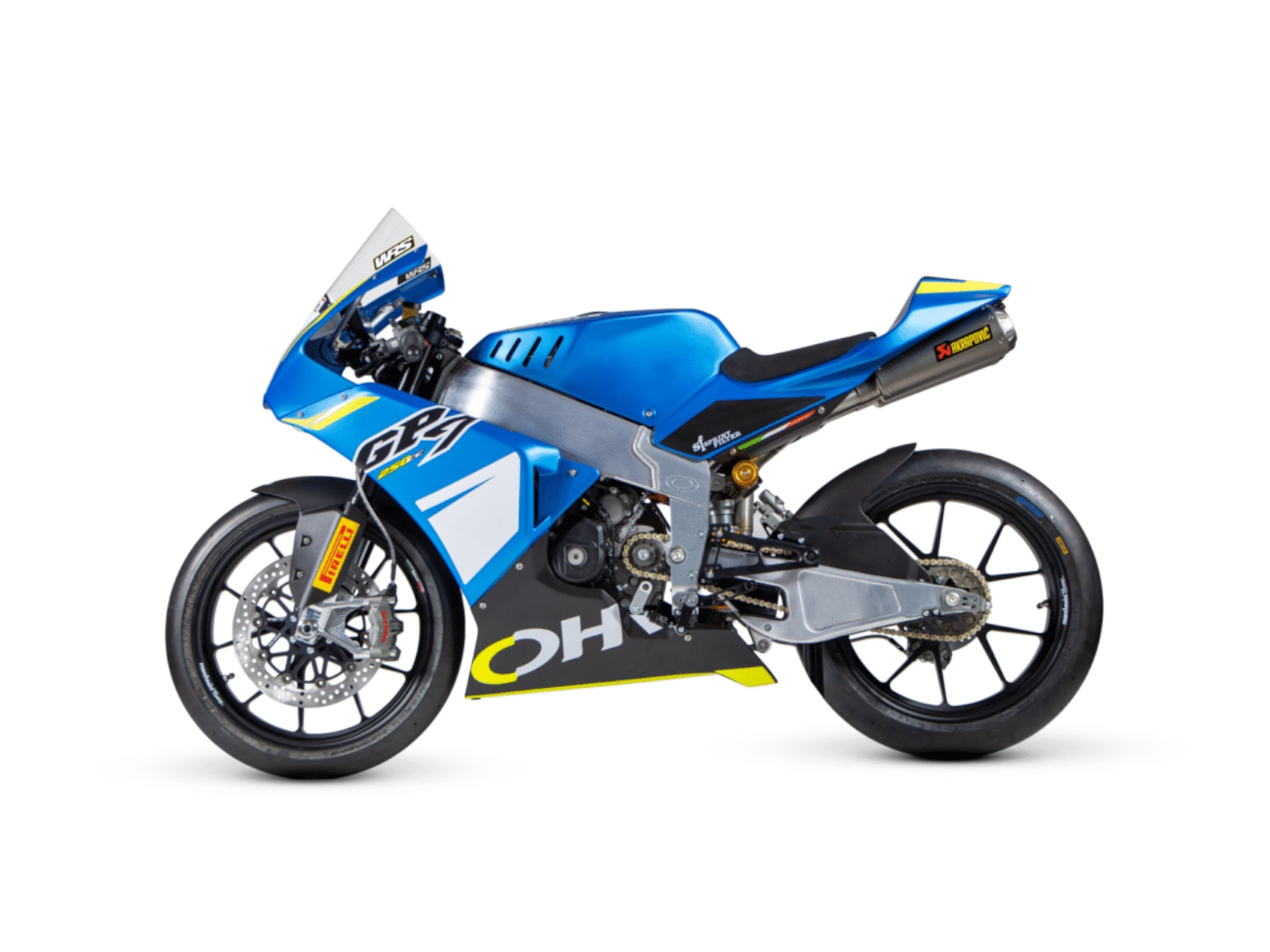 Ohvale GP-7 250 is a highly technical motorcycle, developed in collaboration with leading companies in the motorcycle industry. From the engine injection system specific tor the bike, to the dedicateci ECU developed with strategies derived from Moto3 in collaboration with DELLORTO, and the Akrapovic steel/titanium exhaust system with dual silencers and stone guard mesh, every detail is engineered for performance. The engine brake setup is optimized by the multi-adjustable STM slipper clutch, while the Òhlins TTX rear shock, developed specifically for Ohvale GP-7 250, allows adjustments for compression, rebound, preload, and wheelbase. The Brembo braking system, front and rear, provides riders with maximum contrai and braking performance. These are just some of the advanced features of the bike, which is available in STANDARD and RACE versions.