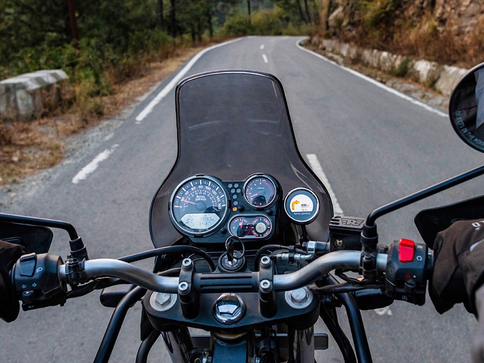 The new improved seat lets you cover longer distances with even more comfort. Panniers at the back. Jerry cans in the front. The Himalayan's mounting points let you strap up and set off anytime. The LCD dashboard lets you track everything from miles to maintenance.