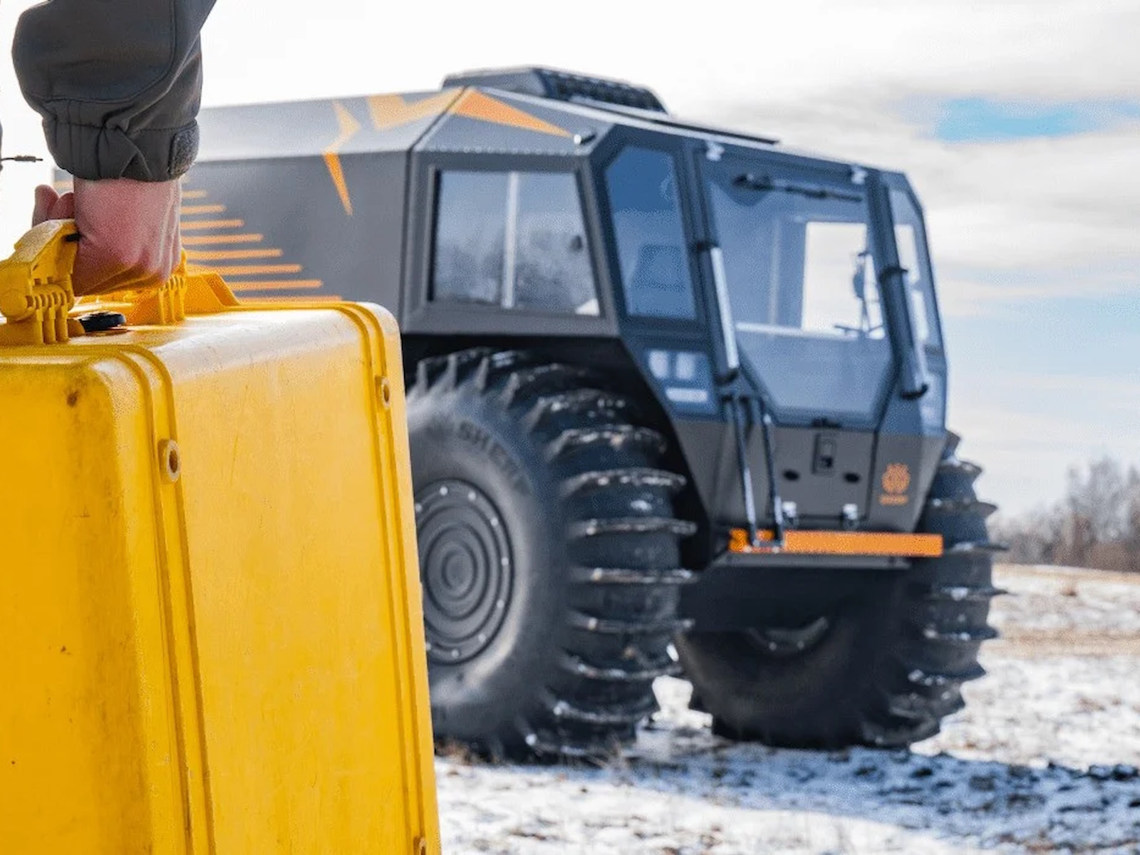 The only wheeled vehicle to climb from waters onto the ice. Able on up to 5 582 m over sea level and overcome obstacles up to 1 m in height.