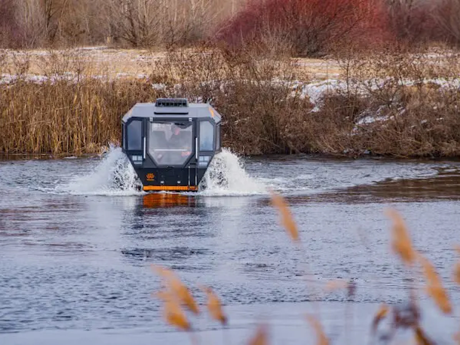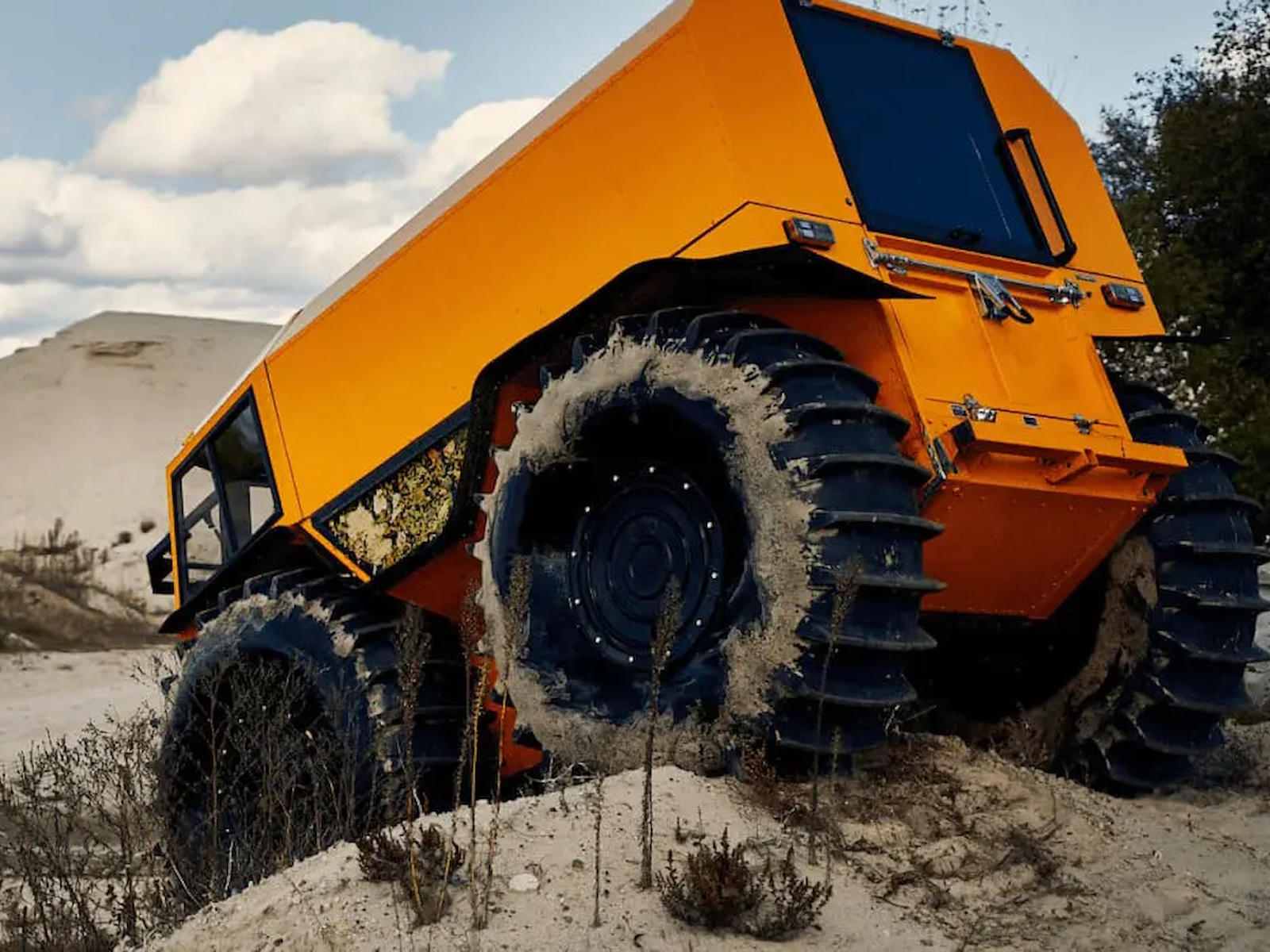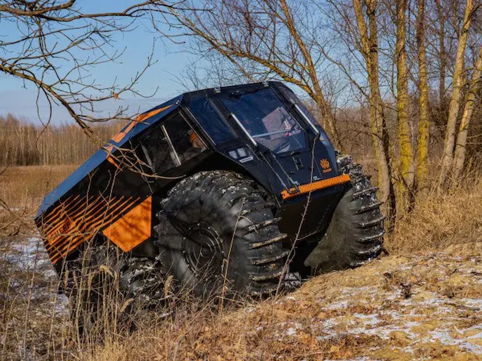SHERP doesn't damage the soil while driving due to the lowest ground pressure indexes among amphibious vehicles: 0.07-0.15 kg/cm² (0.9-2.1 lb/in²).