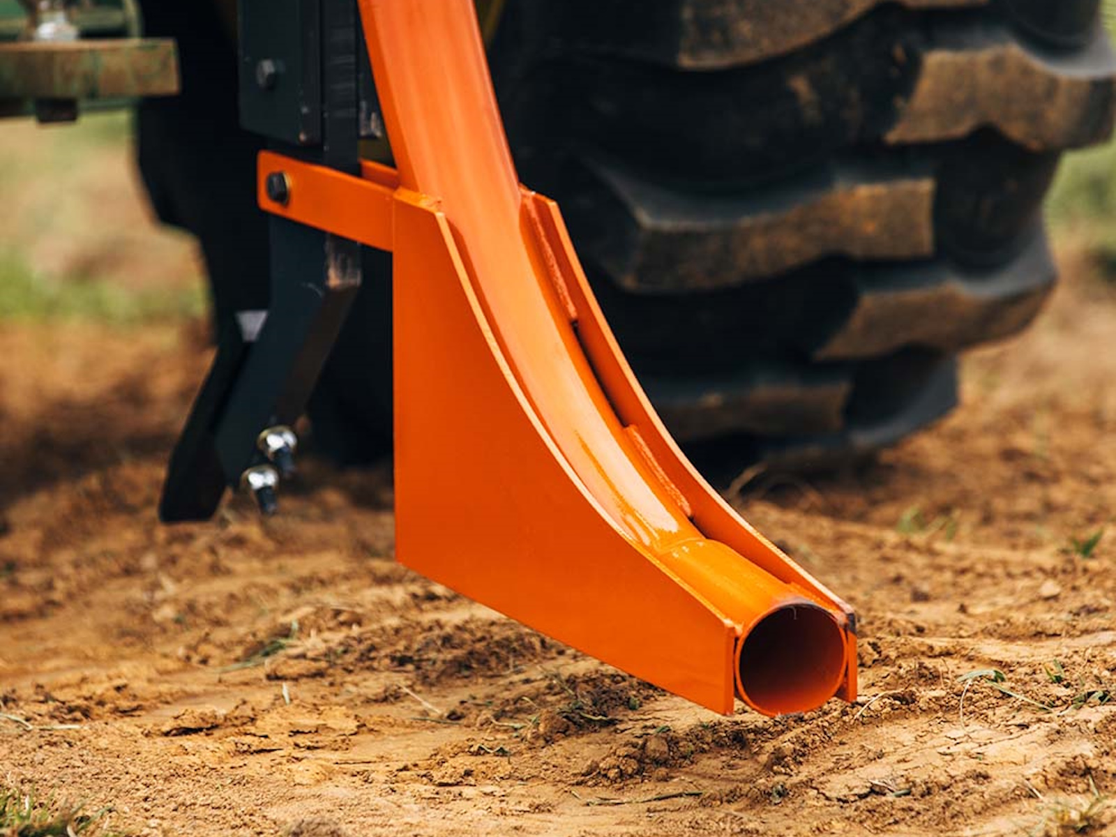 Save time and energy installing pipes, hoses, and wires. This subsoiler and pipe layer combo make quick and easy work of laying materials a foot deep. Quickly attach this implement to your Category 1, 3 Point hitch tractor and watch as it plows through hard and dry land 21" - 33" below the tractors lift pins. A forged and heat-treated scarifier tooth plows through compact soil while the pipe layer feeds and buries pipes and hoses a foot deep — a gamechanger for anyone who has been manually digging and pushing their implement!