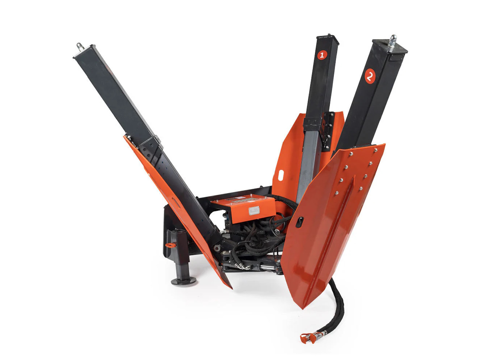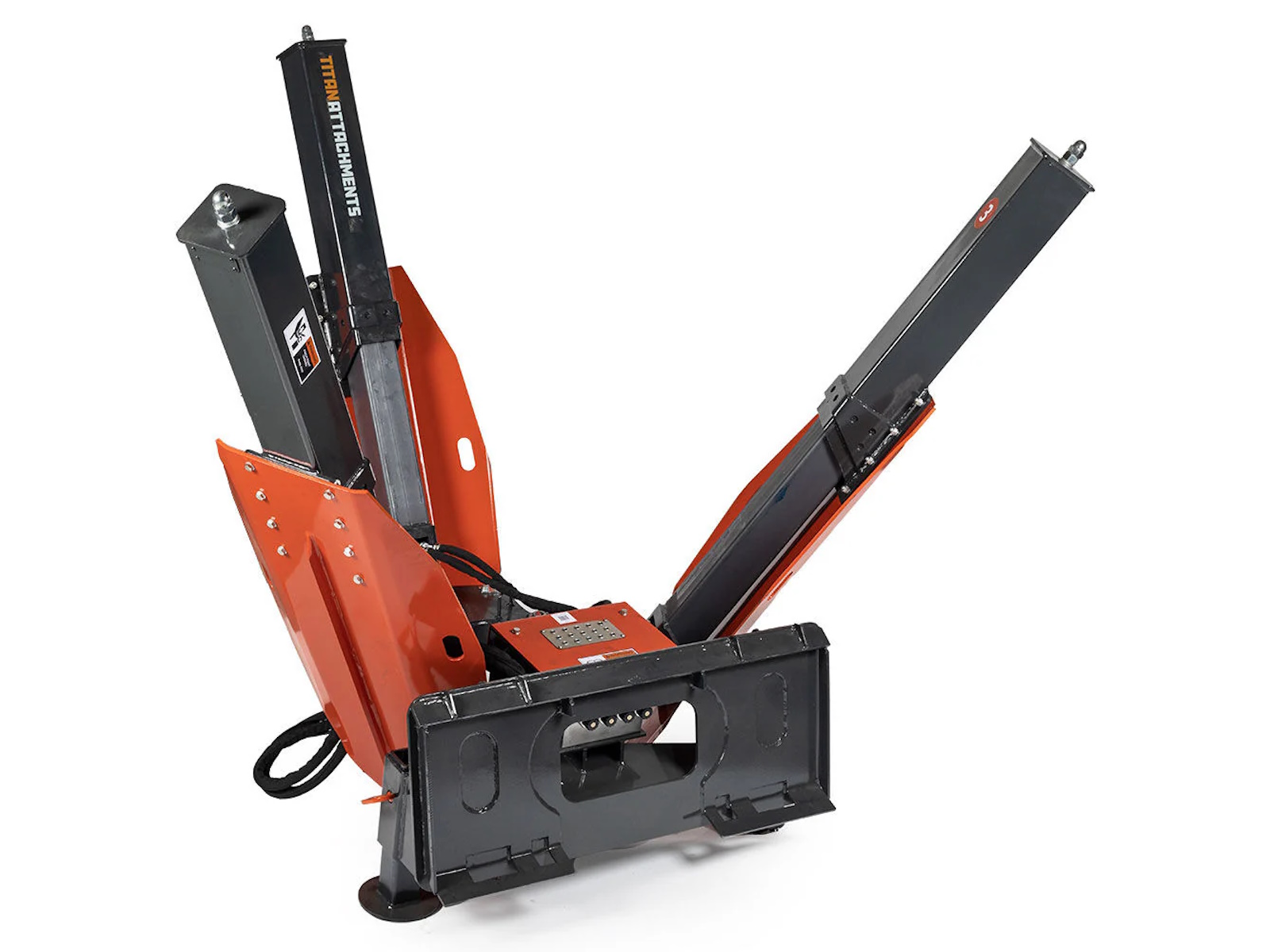 The Tree Spade attachment turns your skid steer loader into a rapid, labor-saving, transplanter used for lifting trees and shrubs directly from the ground. These three blade frames are built to intercept Evergreens with a trunk diameter of up to 4" with a root ball of 34" diameter and 29.4" digging depth. The Tree Spade comes standard with a Universal Skid Steer Quick Tach Mounting System and features four hydraulic cylinders, hoses, couplers, and a controller. Ideal for moving large foliage, shrubs, and more, the Tree Spade’s wide opening swing frame will accommodate large landscaping projects.