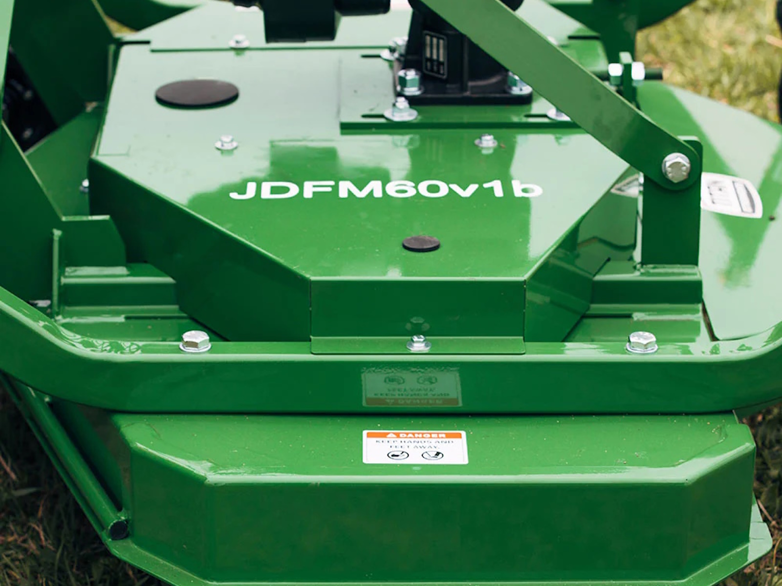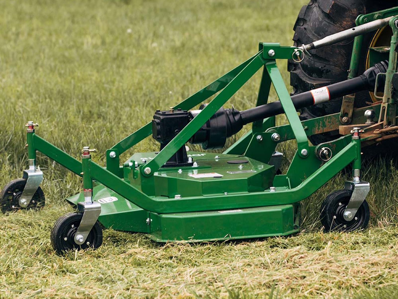 This unit comes equipped with three heat-treated blades and features a wide rear discharge to eliminate grass buildup in uncut areas. Save time switching out your implements and attach your mower to your machine from the comfort of your seat. This attachment is quick hitch compatible and is constructed with high grade steel and a low-noise cast iron gear box for a long service life.