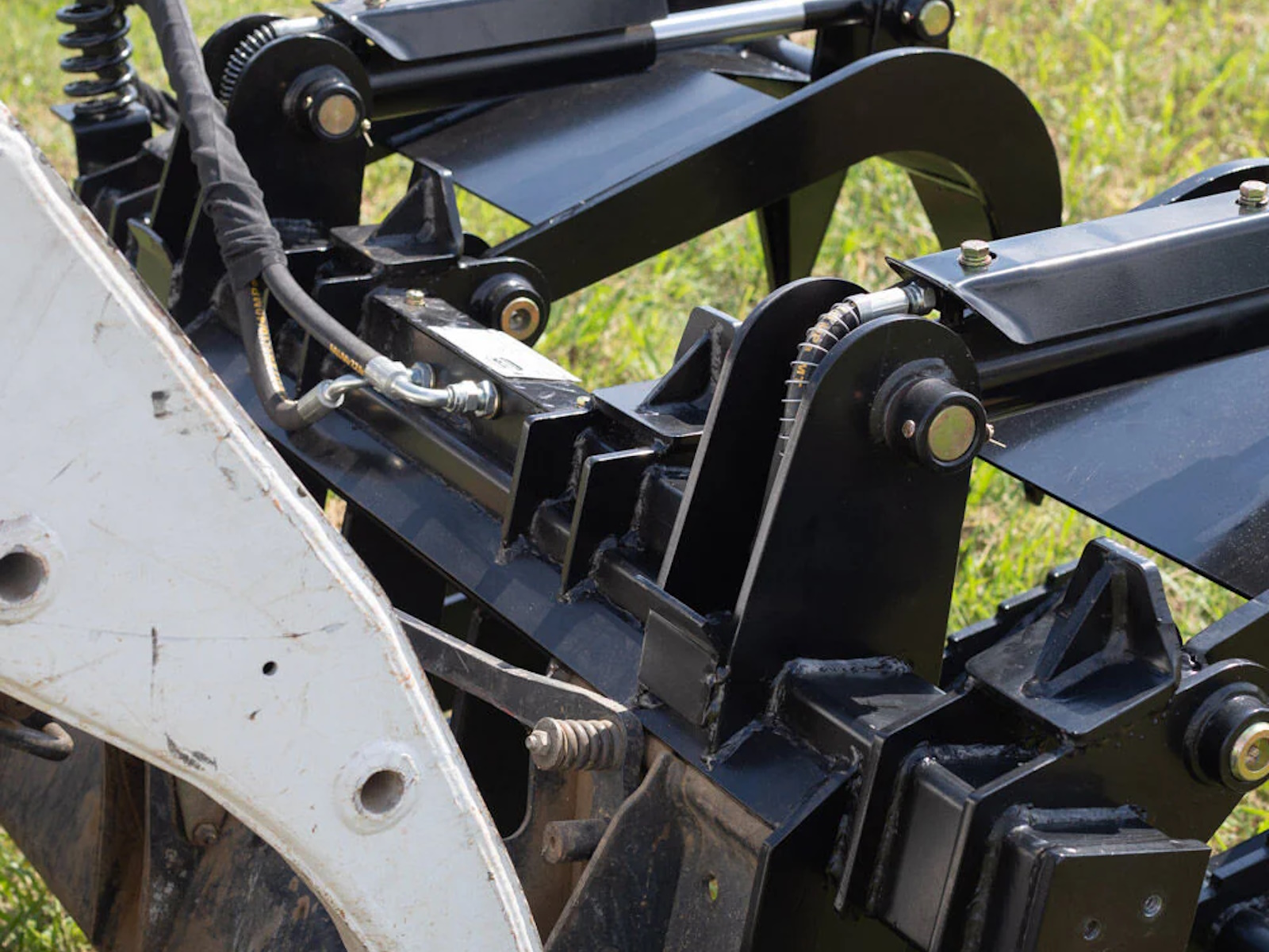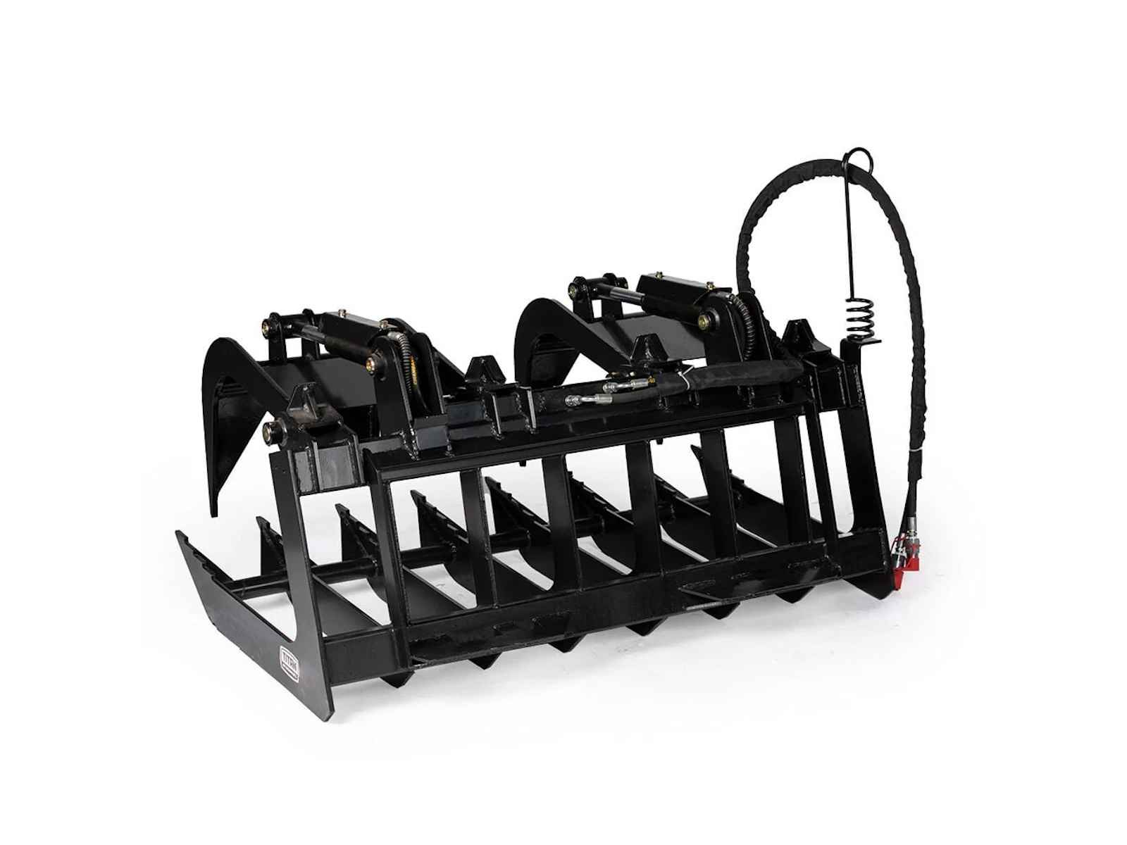 The Root Grapple Bucket is an excellent landscaping tool, providing a superior and more efficient way to move rocks, logs, brush, and other heavy objects. The heavy-duty bucket is built with a rugged design highlighting two grapples with a 34-inch opening and 24-inch-long bottom tines designed to tear through small roots and brush easily. This machinery is so efficient because of its twin 3000 PSI cylinder. The twin 3000 PSI cylinder allows for some serious heavy lifting. It also helps the machine run smoothly without taxing your loader. This attachment also features cylinder back stoppers which prevent the upper clamps from hyperextending or getting stuck in an upright position. This unit connects to your skid steer loaders or tractor equipped with the SSQA or Universal Skid Steer Style Quick Tach System and includes greaseable pins, bushings, hoses, and couplers for your convenience.