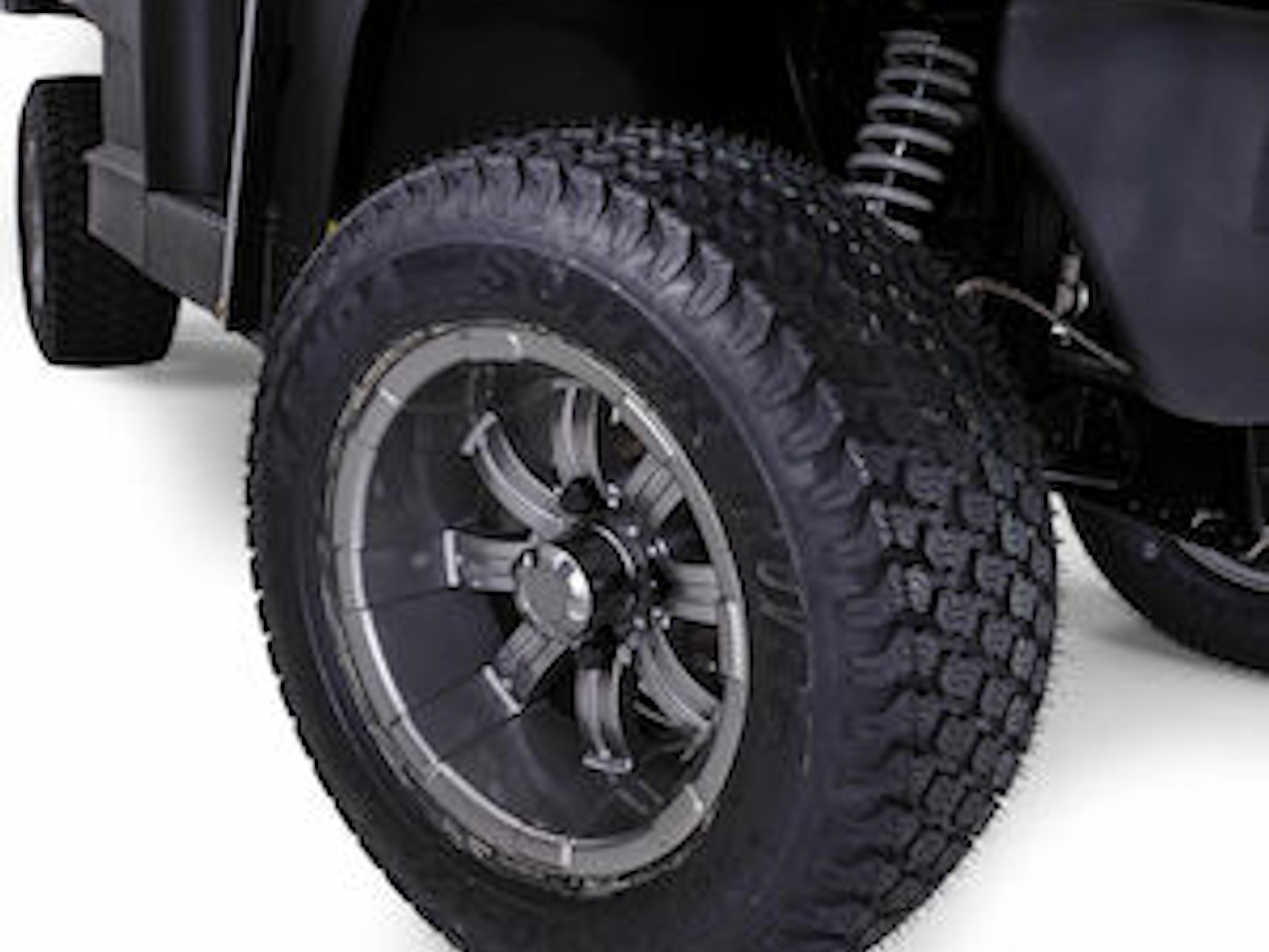 - Additional 3" (7.6 cm) of increased ground clearance, and stylish turf friendly tires with modern aluminum wheels.