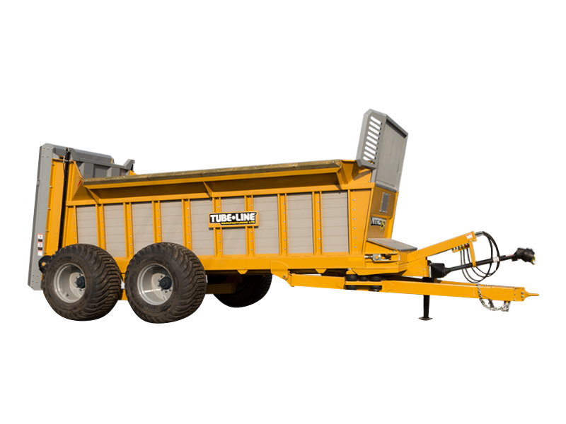 The NITRO spreader from Tubeline originally started with the 450, 600, and 750 models followed by the 950 model shortly after the initial product launch. Developed with features to ensure commercial readiness these spreaders offer slip slide poly board floors and walls, a guillotine endgate, reversible apron chain, and quick drop beaters. Engineered for commercial use, our commercial line are all scale ready. The guillotine endgate can be held in any position controlling how much material is able to be moved to the beaters by the variable speed apron chain. This method of delivery provides consistent metering whether working with pen pack or semi-solids.