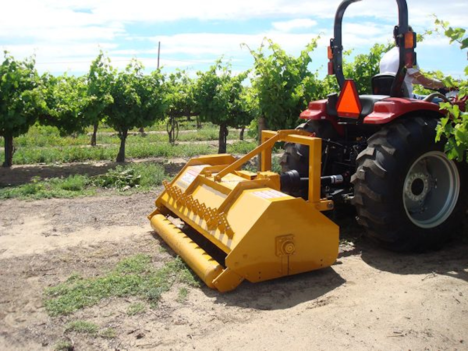 The Vrisimo 300 Series Brush Shredder is the perfect mid-range flail brush shredder for light to medium-sized projects in an orchard or vineyard application. This machine ranges in size from 48 inches to 7 feet and features an adjustable rear roller to fine tune heights and rear pickup tines for thorough brush cutting