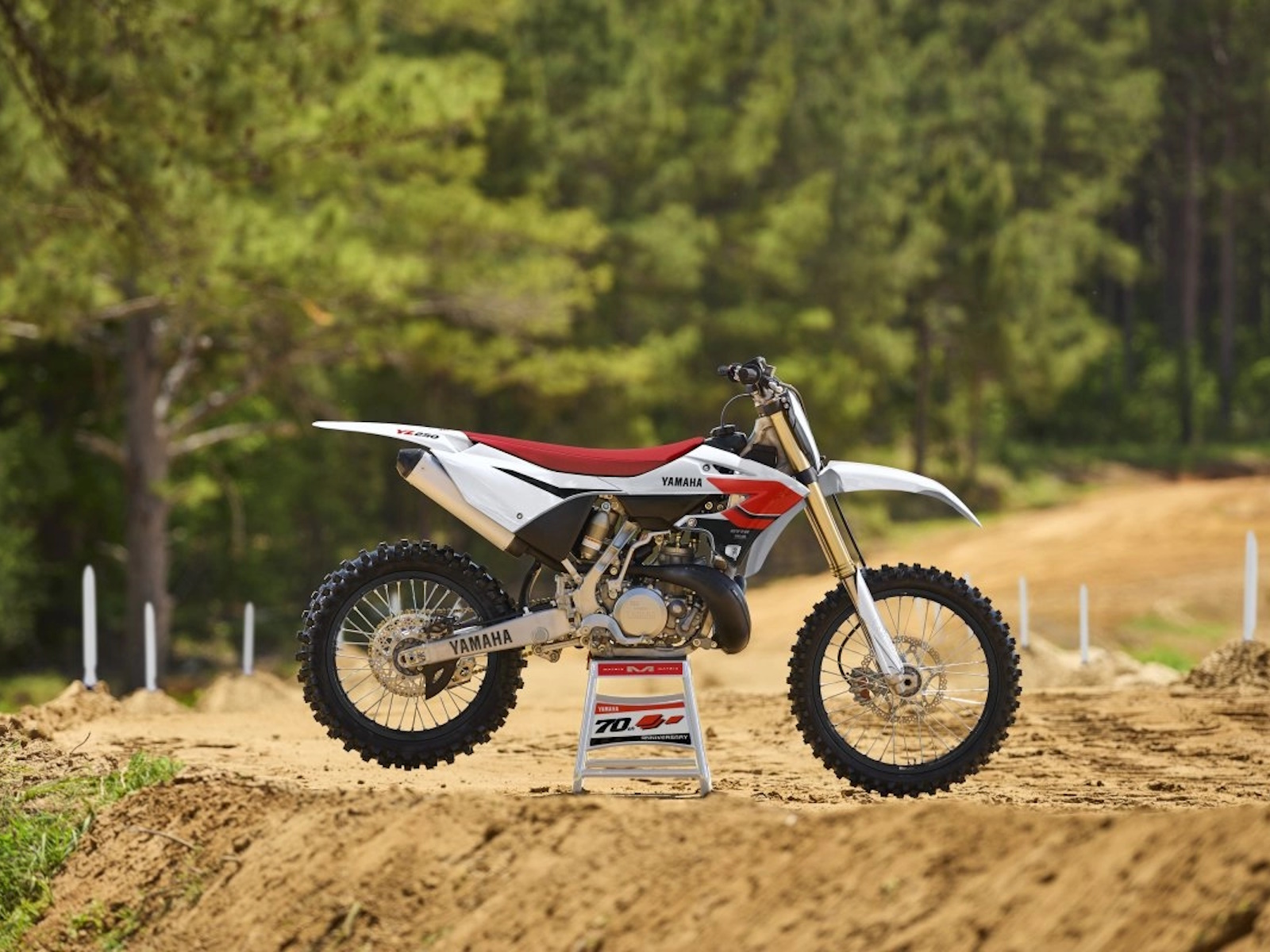 - Iconic white and red 70th Anniversary Edition livery combines with the YZ250's aggressive bodywork for a stunning look.