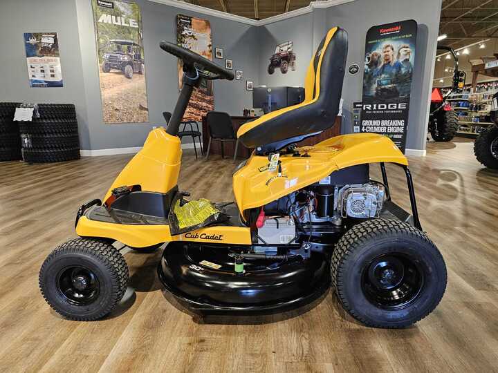The Cub Cadet® CC30H 30-in. 10.5 HP* Compact Riding Lawn Mower is designed to fit through and be stored in small spaces. LED headlight designed for visibility in low light conditions. A high-back seat engineered to provide elevated back support.