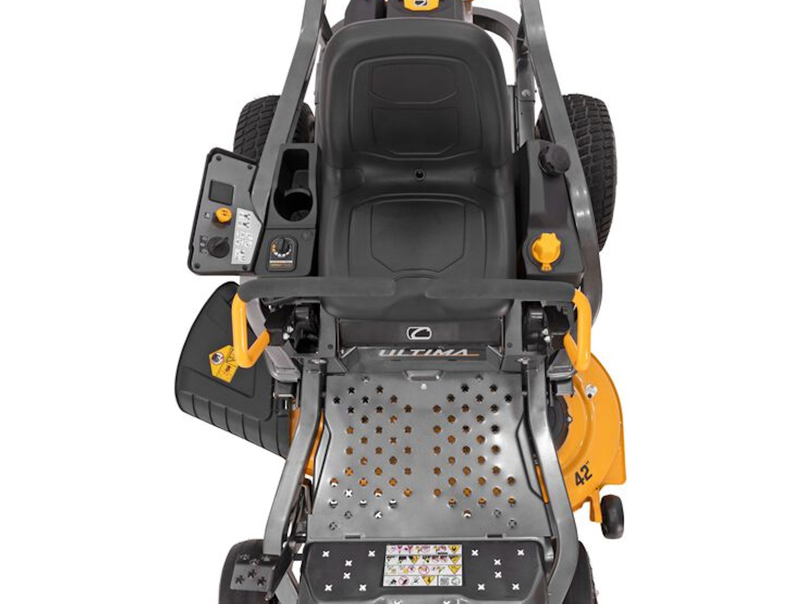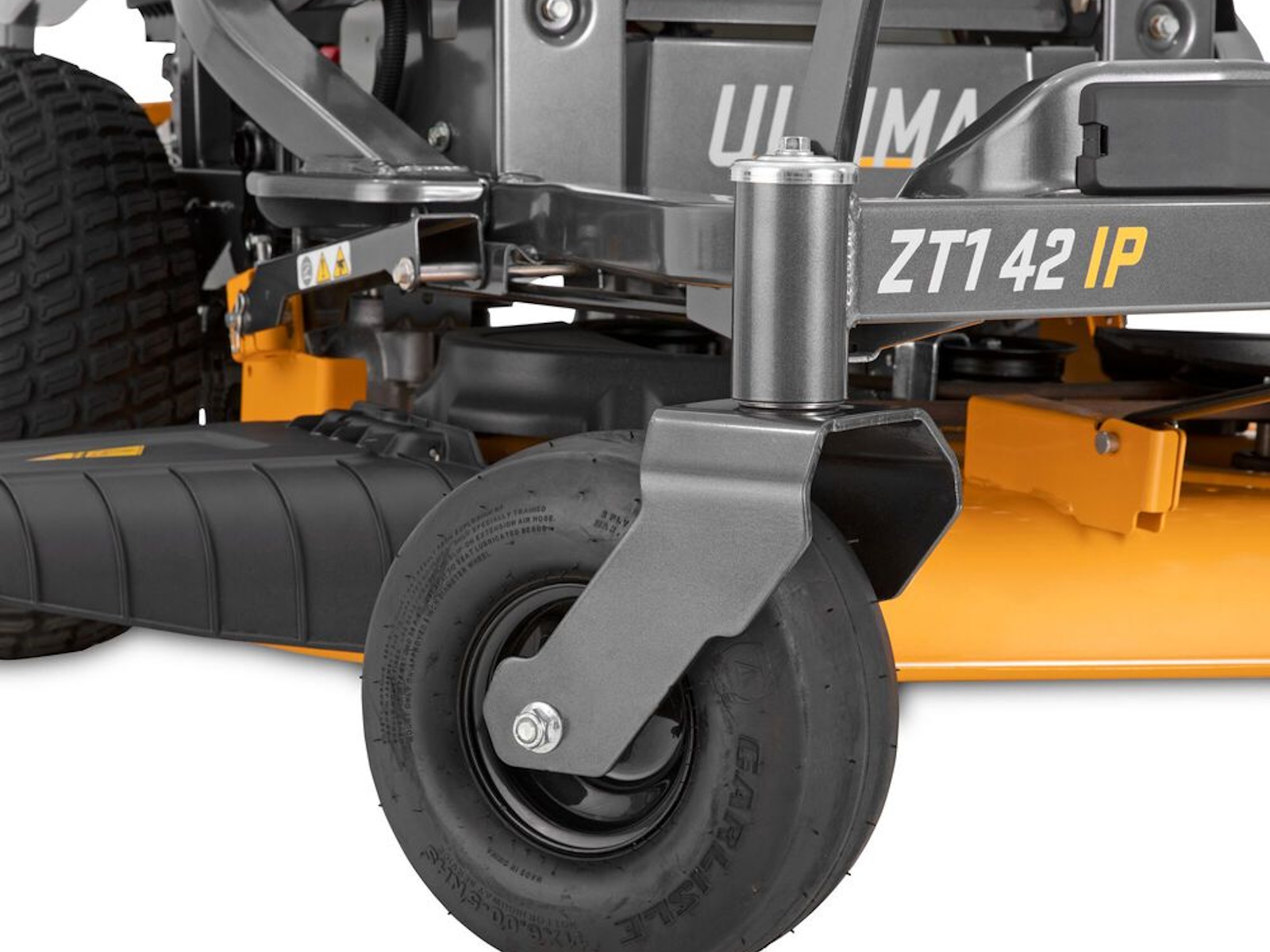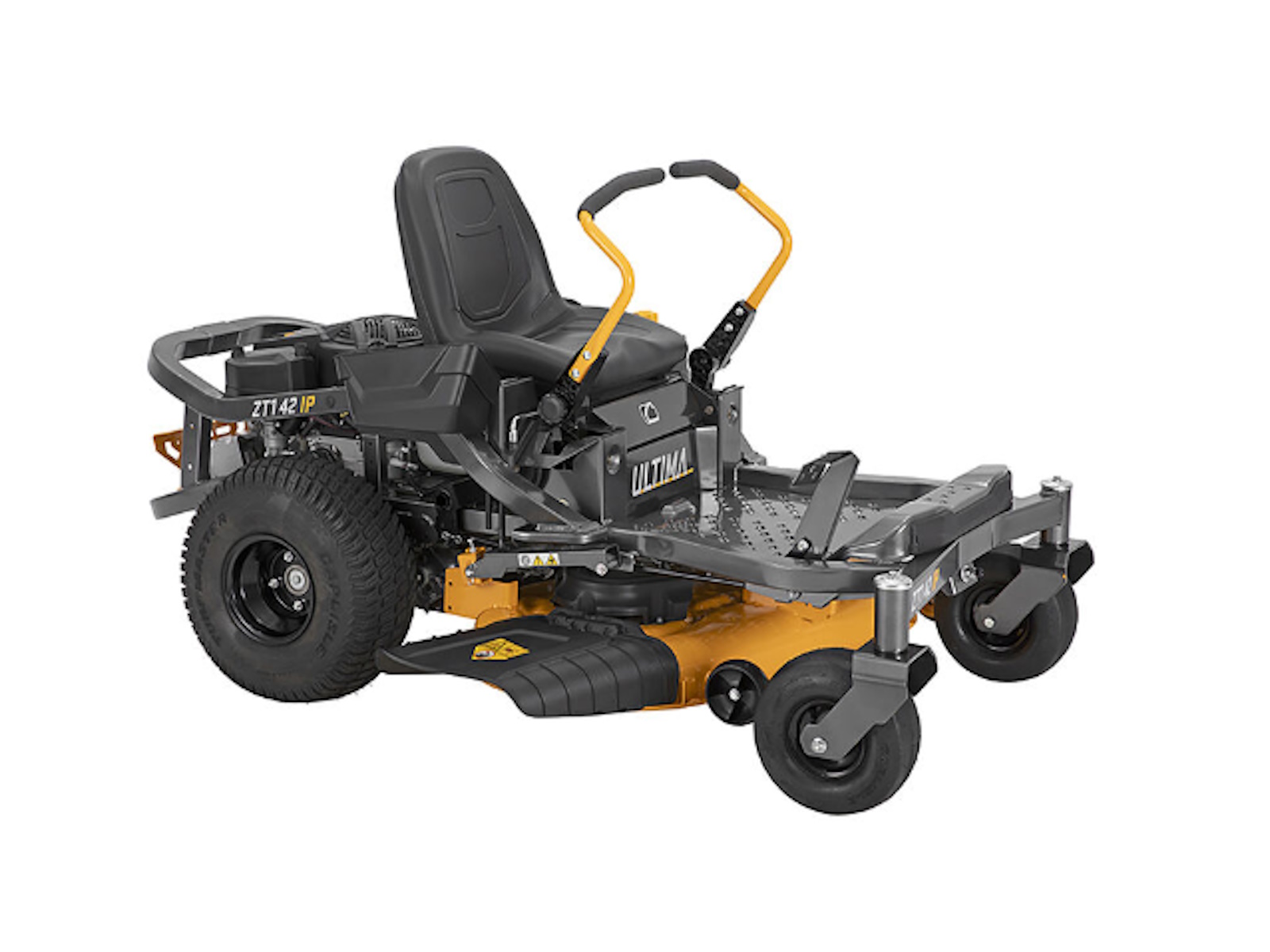 The Ultima Series ZT1 42IP 42-in. 547cc Zero-Turn Lawn Mower With IntelliPOWER® is designed to deliver a premium cut with few clumps and stragglers, fine clippings and evenness. IntelliPOWER® Technology delivers up to 18% more available power*, resulting in less bogging down when mowing in challenging conditions like tall, thick, or wet grass. Dual hydrostatic transmissions engineered for quick ground speeds that leaves your yard with a professional-quality finish. A continuous tubular steel frame with fully e-coated corrosion defense system designed to help protect against wear and tear.