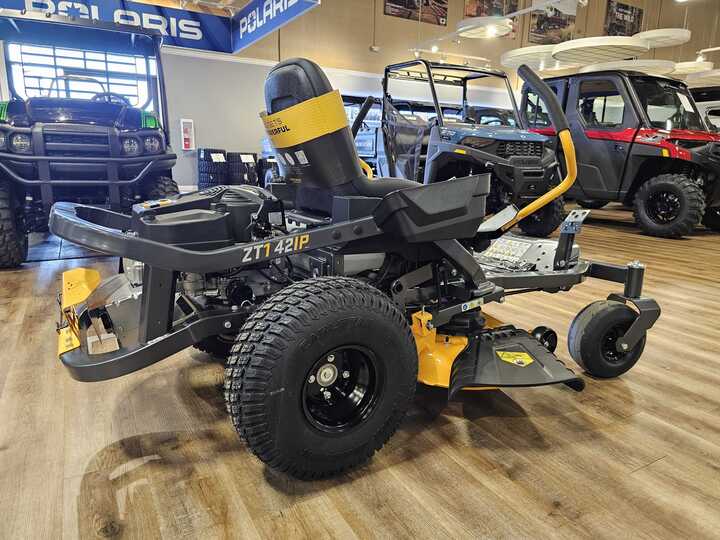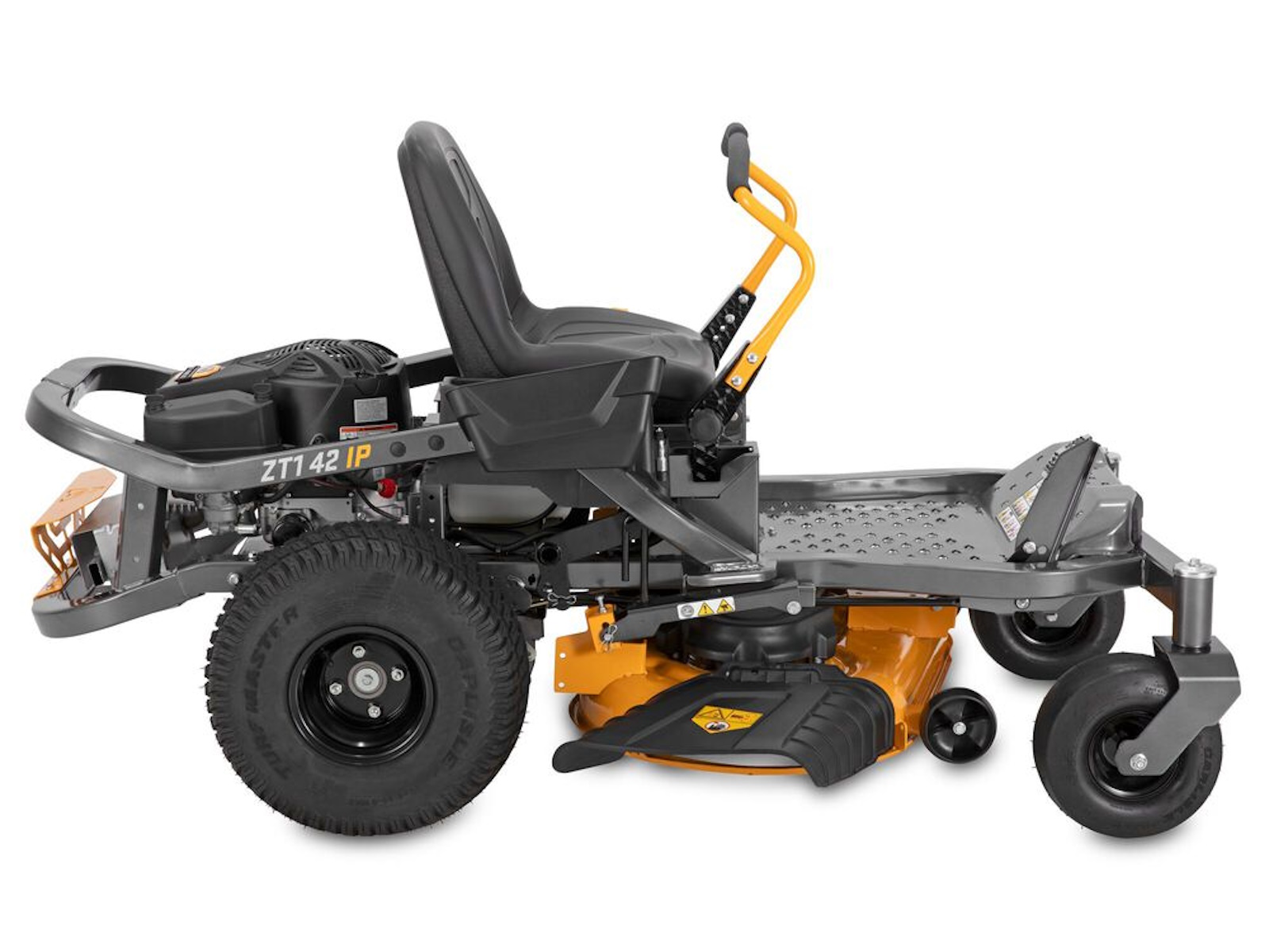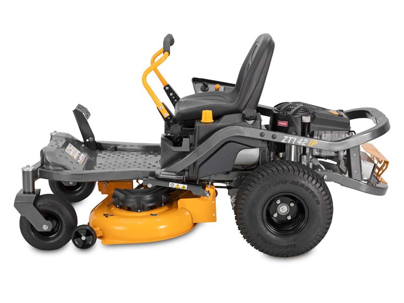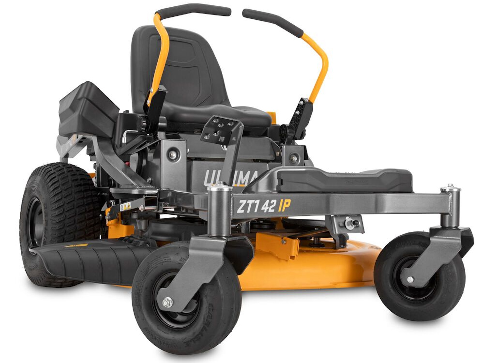 The Ultima Series ZT1 42IP 42-in. 547cc Zero-Turn Lawn Mower With IntelliPOWER® is designed to deliver a premium cut with few clumps and stragglers, fine clippings and evenness. IntelliPOWER® Technology delivers up to 18% more available power*, resulting in less bogging down when mowing in challenging conditions like tall, thick, or wet grass. Dual hydrostatic transmissions engineered for quick ground speeds that leaves your yard with a professional-quality finish. A continuous tubular steel frame with fully e-coated corrosion defense system designed to help protect against wear and tear.