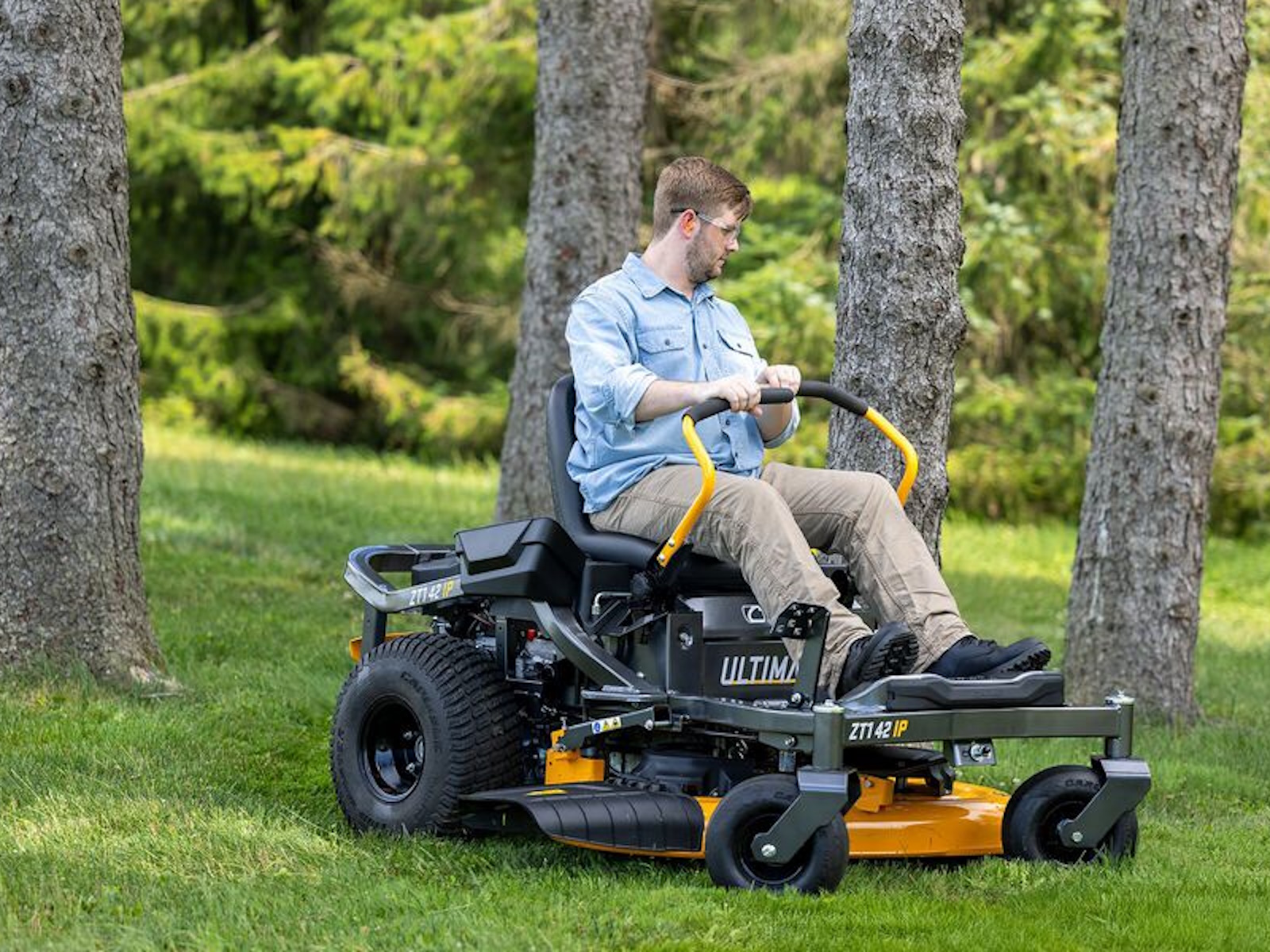 The Ultima Series ZT1 42IP 42-in. 547cc Zero-Turn Lawn Mower With IntelliPOWER® is designed to deliver a premium cut with few clumps and stragglers, fine clippings and evenness. IntelliPOWER® Technology delivers up to 18% more available power*, resulting in less bogging down when mowing in challenging conditions like tall, thick, or wet grass. Dual hydrostatic transmissions engineered for quick ground speeds that leaves your yard with a professional-quality finish. A continuous tubular steel frame with fully e-coated corrosion defense system designed to help protect against wear and tear.