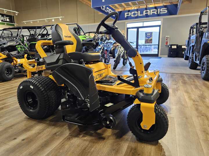 The Cub Cadet® Ultima Series ZTS2 54 54-in. 24 HP* Zero-Turn Lawn Mower with AeroForce™ Fabricated Deck and Synchro-Steer™ Technology is designed to deliver a premium cut with few clumps and stragglers, fine clippings and evenness. Synchro-Steer™ technology offers 4-wheel control designed to help provide stability for straight line mowing on hillsides and slopes up to 20-degrees. Dual hydrostatic transmissions engineered for quick ground speeds that leave leaves your yard with a professional-quality finish.