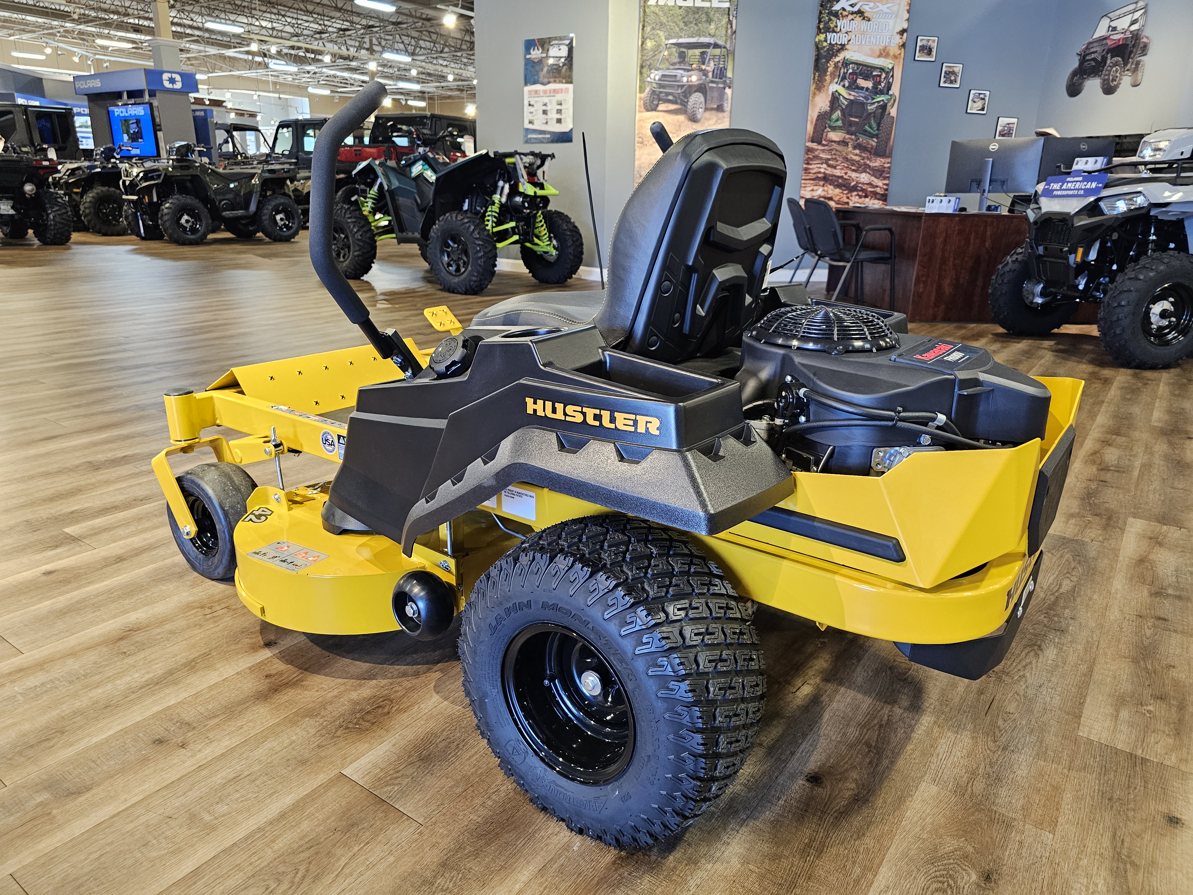 Powered by a V-Twin Kawasaki engine. -