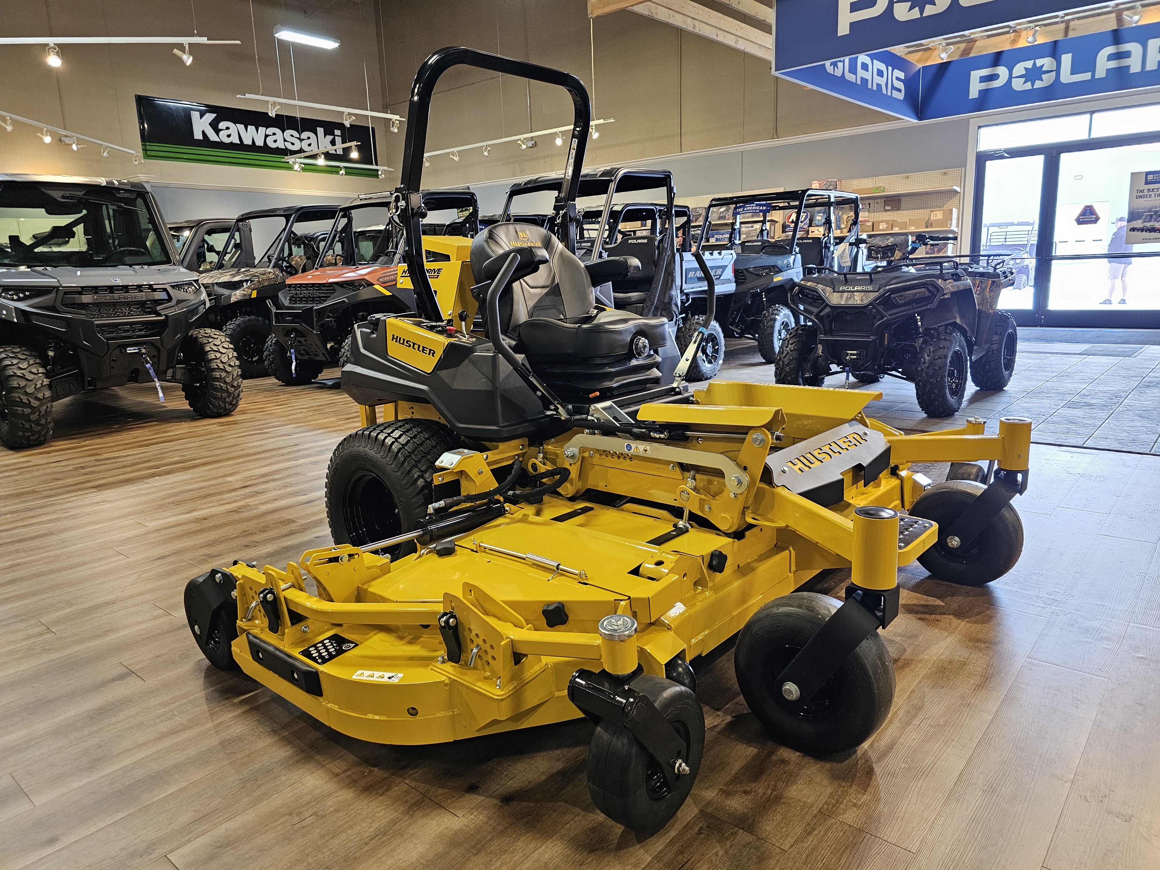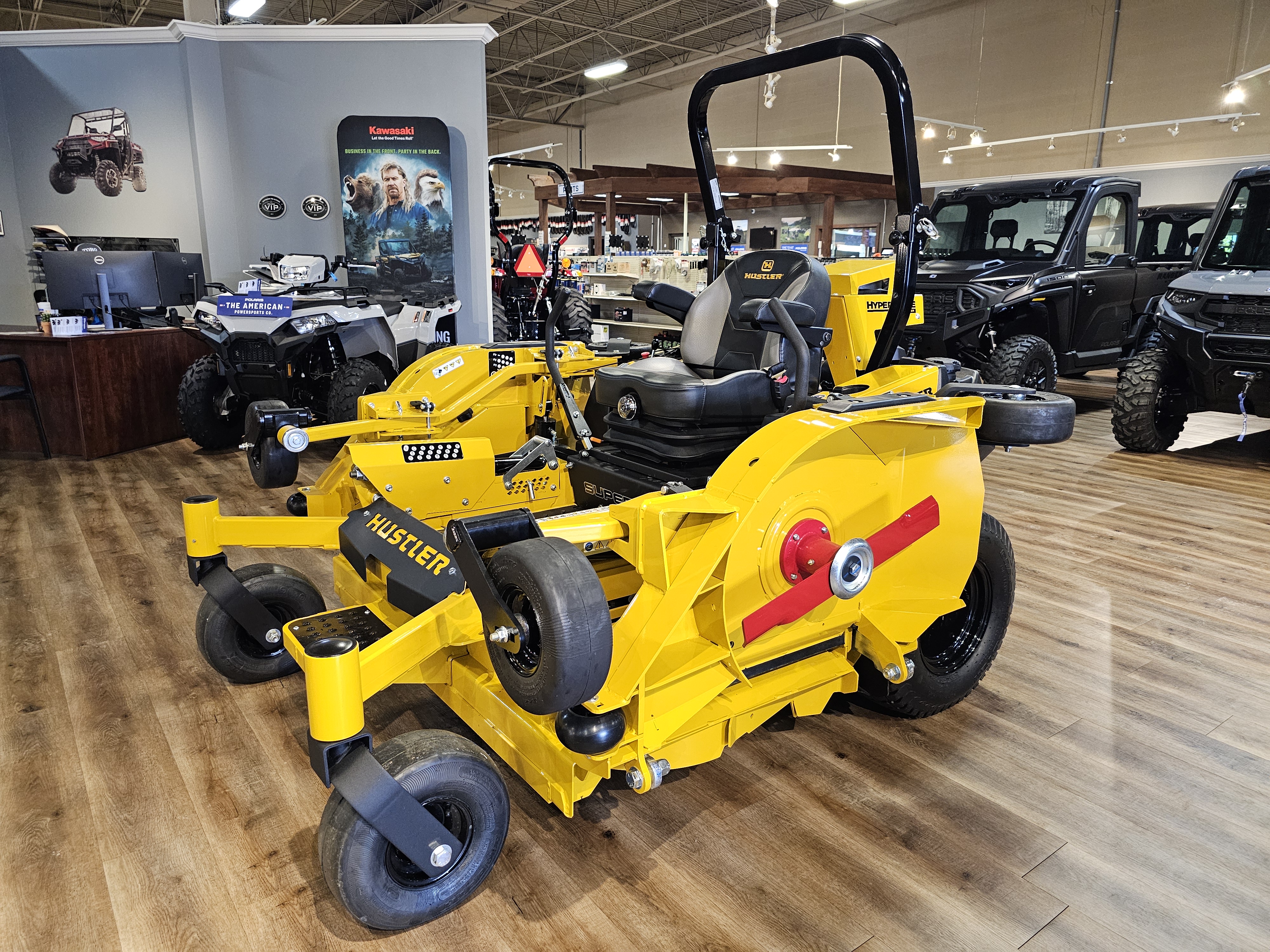Hustler's Super 104™ can easily handle acres of work. Offering a 104" width of cut, zero-turn precision and up to an impressive 11 mph speed, this machine is in a class by itself.