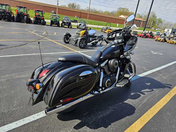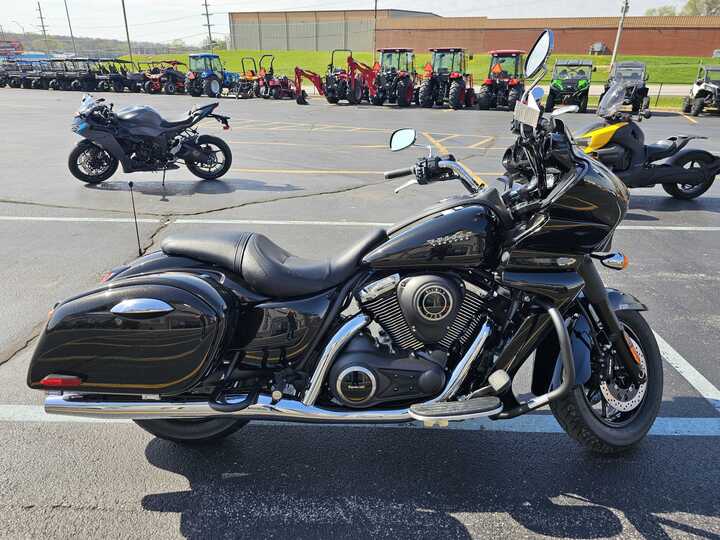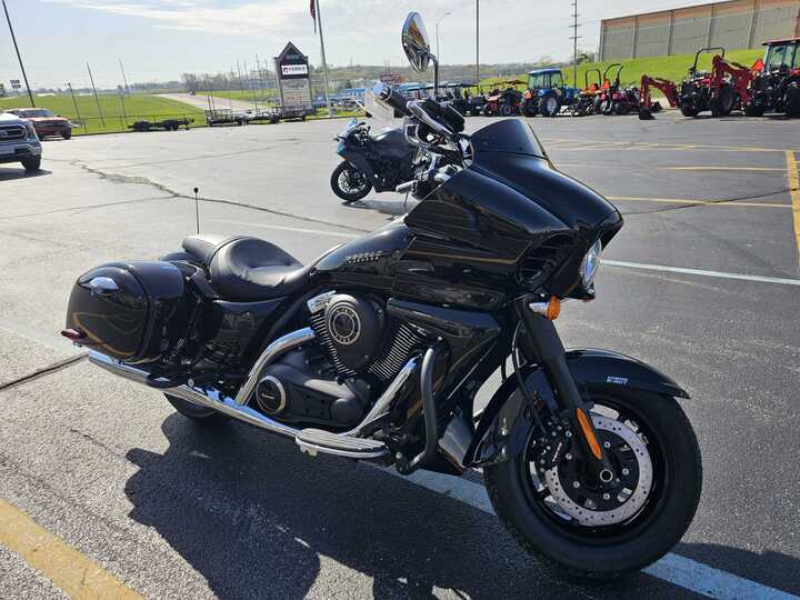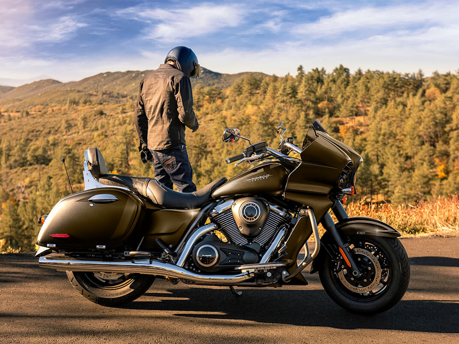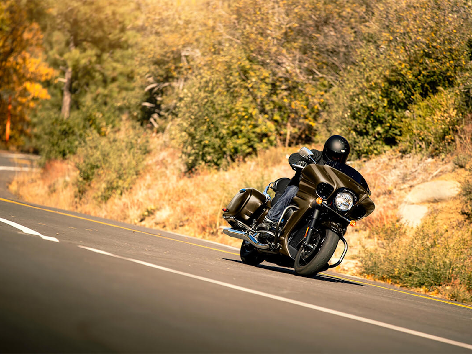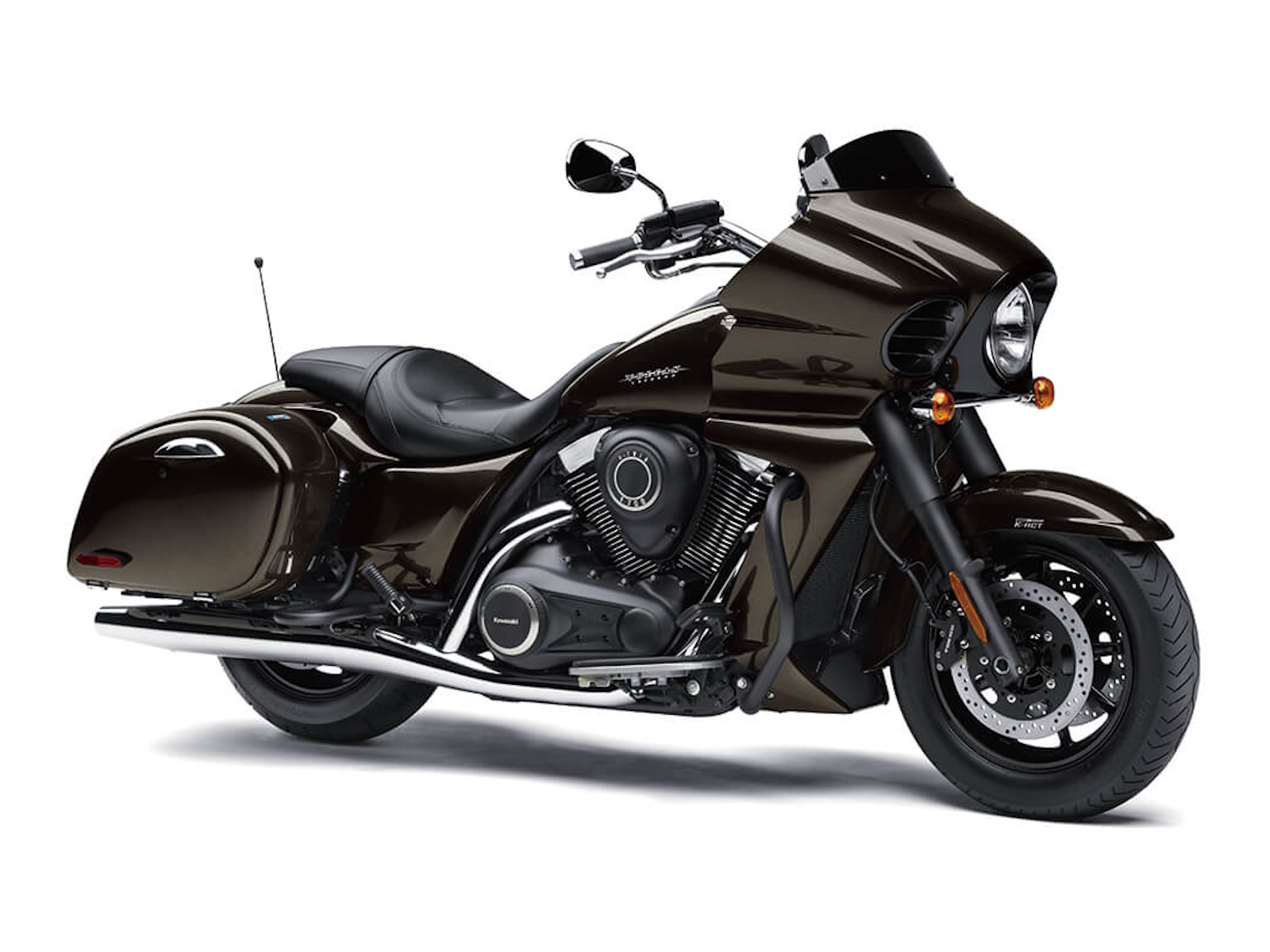 The Vulcan® 1700 Vaquero® cruiser may look like a custom V-twin bagger, but this motorcycle is in a class of its own. A roaring 1,700cc engine featuring advanced Kawasaki technology offers a smooth, reassuring ride. The blacked-out engine, distinct bodywork styling, and select chrome accents create a unique and bold appearance.