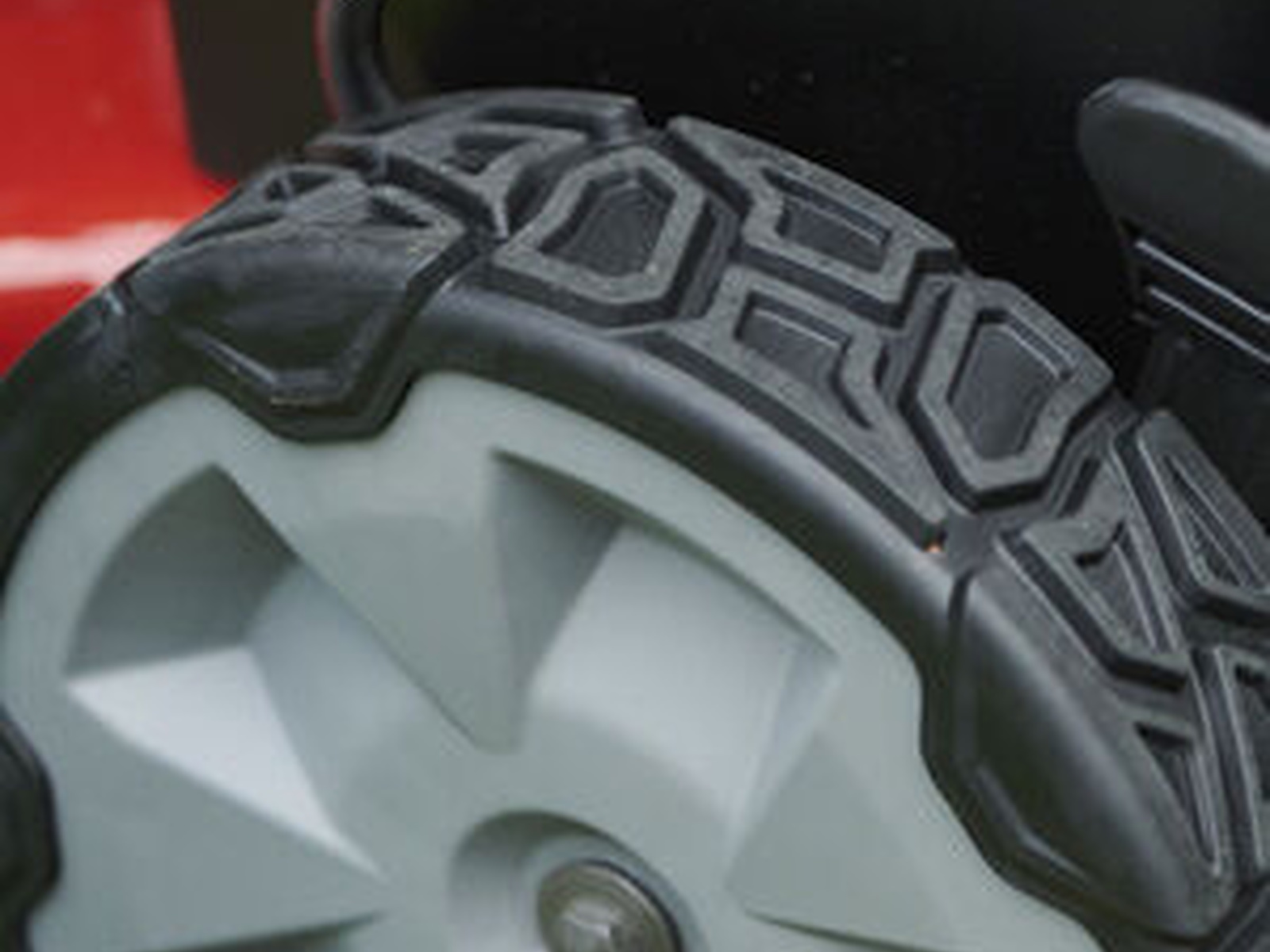 - With a tread pattern that adds traction without tearing up your grass, our new wheels give you just enough bite to get up hills and sail through slippery, damp conditions.