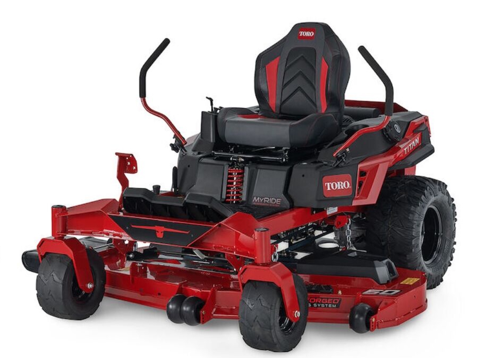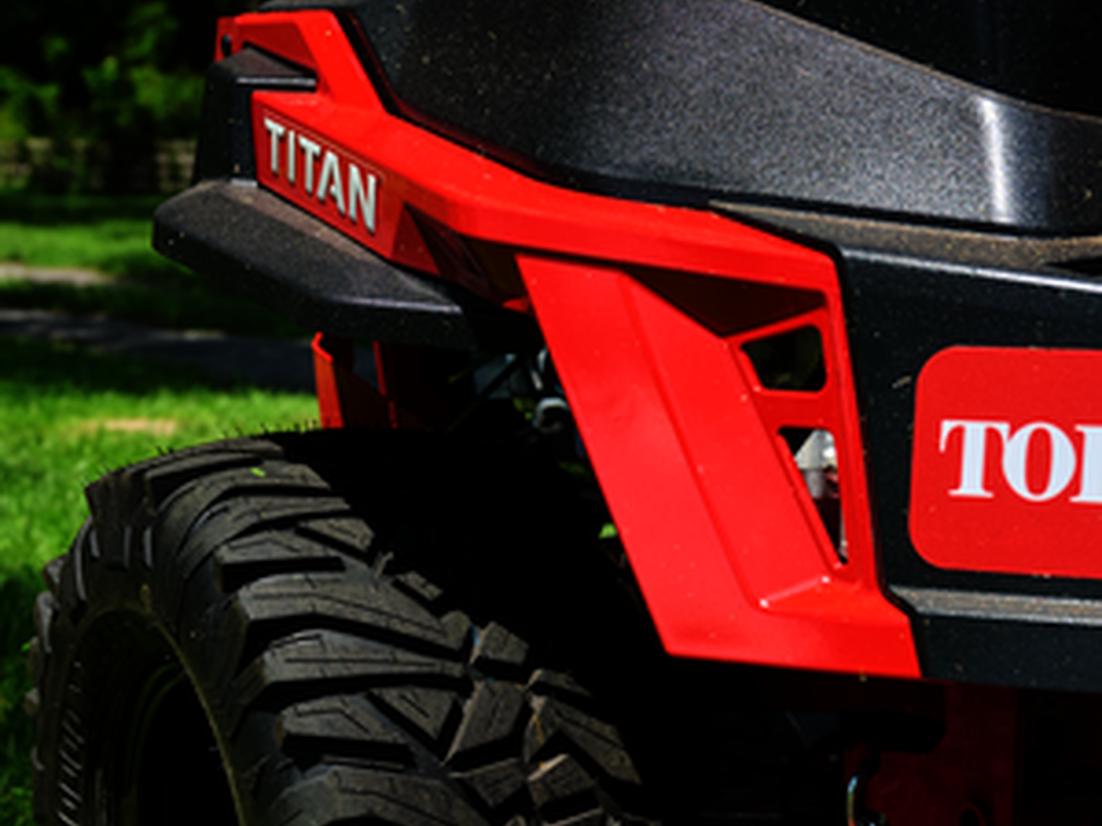 Release this big bad beast onto your property and watch Mother Nature cower beneath you. The Toro TITAN is built with over a century of pro-level engineering so you can devour every acre with unflinching strength, laser precision and extraordinary power. With a heavy duty IronForged deck, a reinforced bullnose leading deck edge and massive, aggressive treaded rear tires, there's nothing that will stop this fearless force of perfection. All the control in your hands with features like a commercial-style drop pin height of cut and easily adjustable control levers. So go ahead, unleash your inner beast.