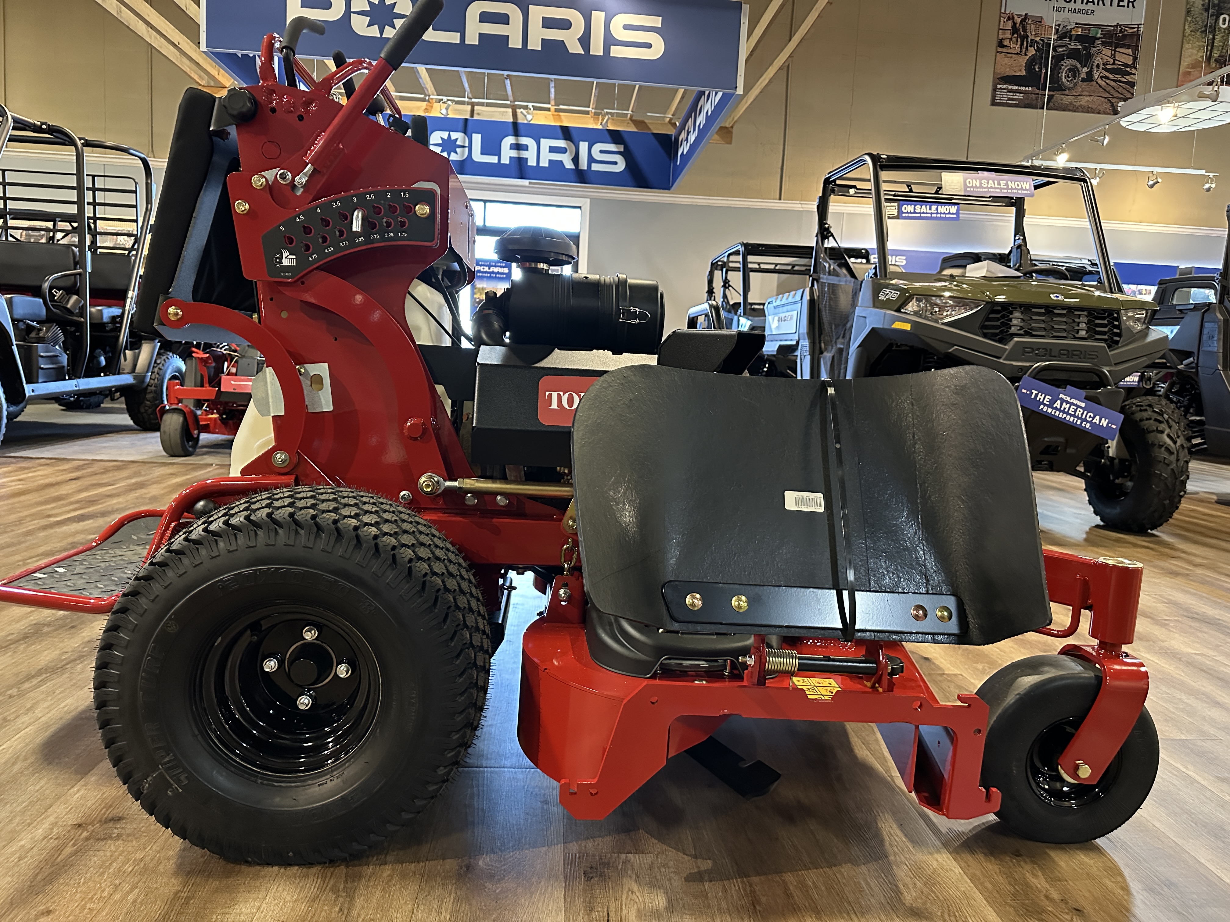 - Comfortable Ride: The platform has self-adjusting suspension, a larger open area to move around, and sloped sides for a more secure stance when cutting sloped terrain.