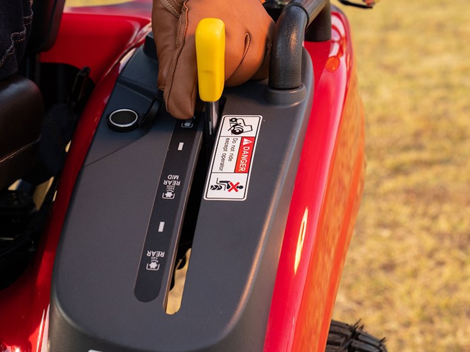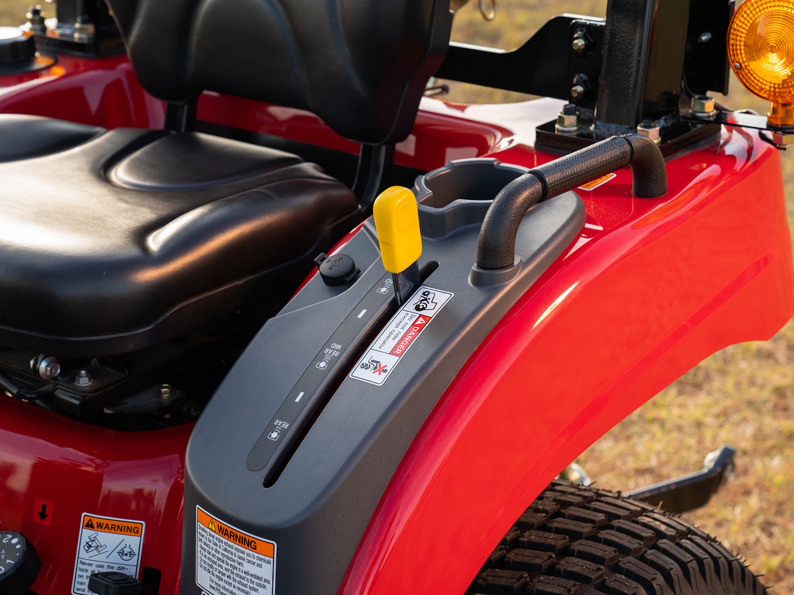 - Controls to manage attachments: Even while the tractor is in motion, a dedicated PTO lever can be used to speed up or slow down implement rpm, while the dial can raise and lower implements at the prescribed speed.