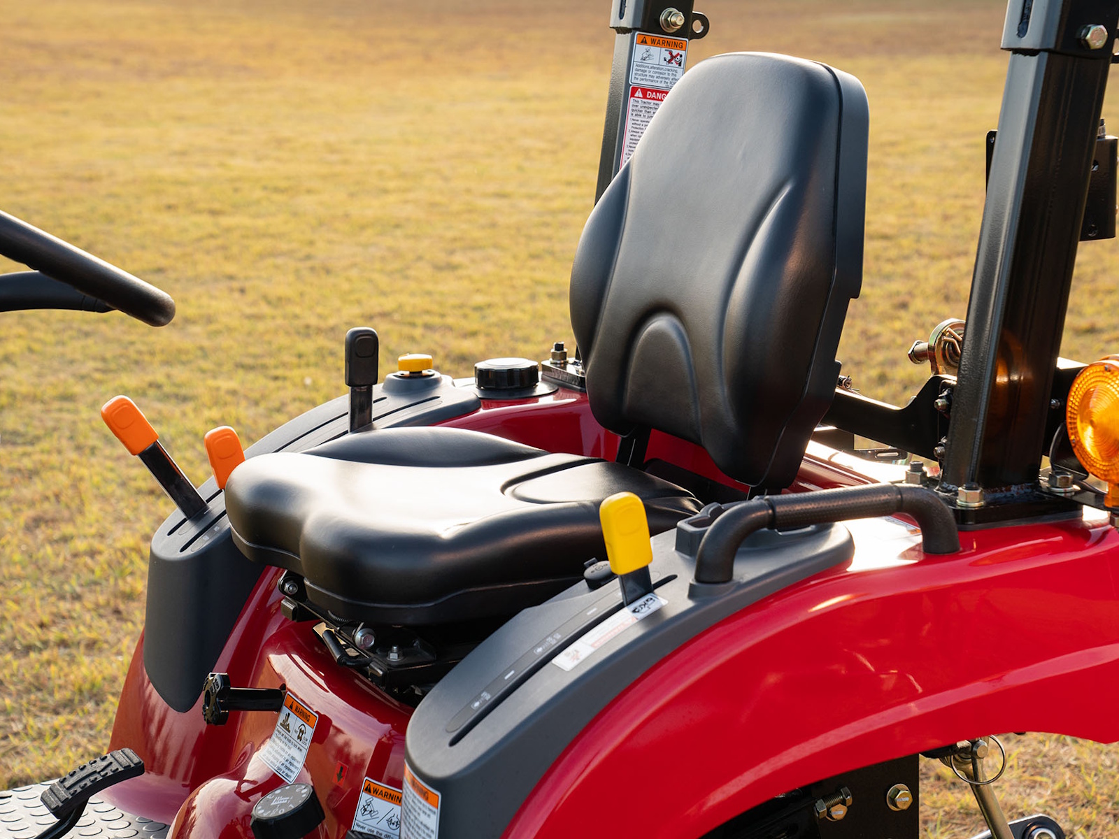 - HST for infinitely variable drive speed: Responsive hydrostatic controls offers a smooth ride for operators, from the forward and reverse pedal to the powered steering wheel. These controls reduce the need for operator effort during a range of tasks, particularly while operating the optional front-end loader.